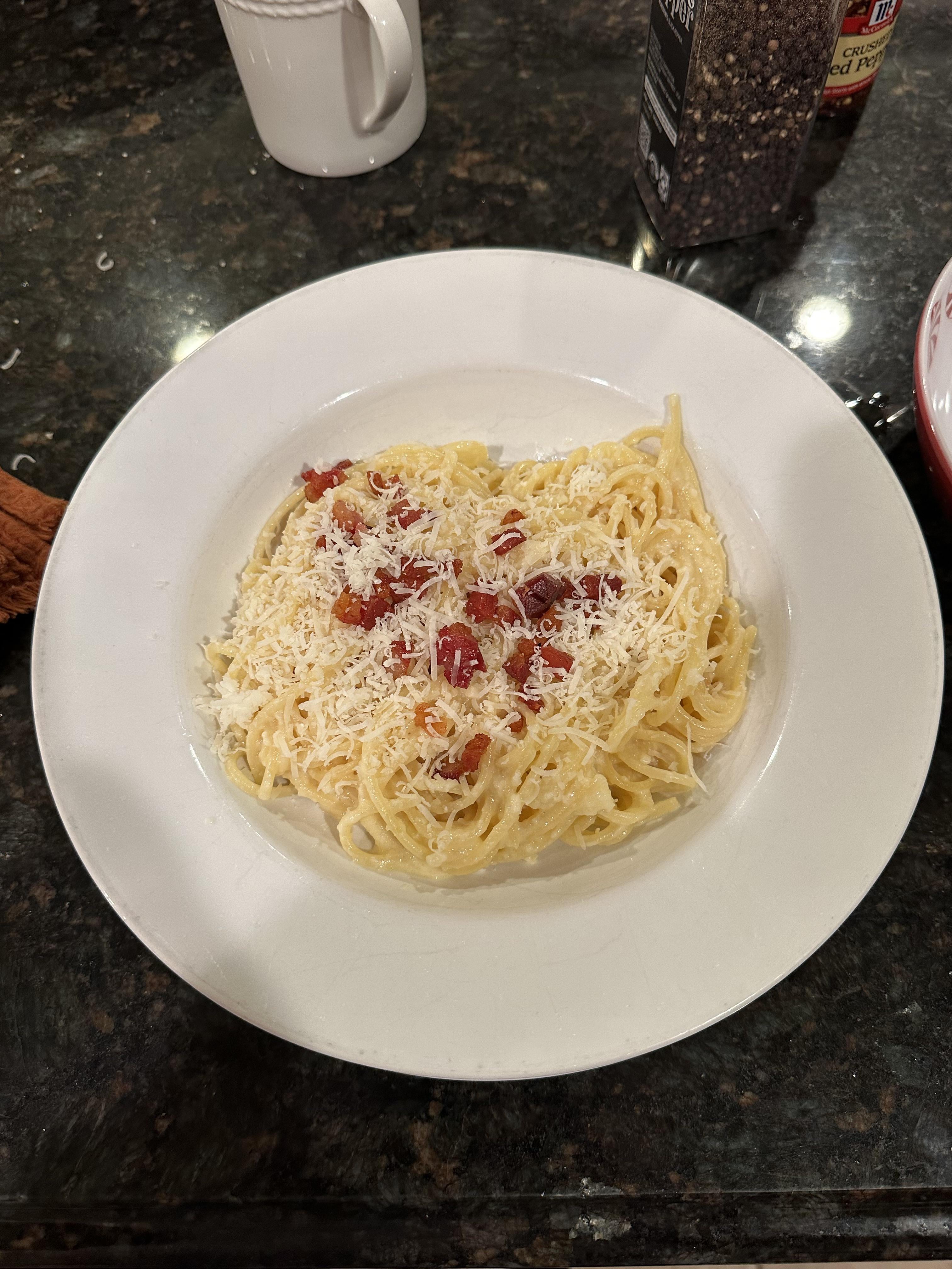 50/50 Parmigiano Reggiano Pecorino Romano mix, topped off with guanciale. by Delicious_Oil9902 homemadeitalian foodItalian RecipesWrite A CommentYou must be logged in to post a comment.
