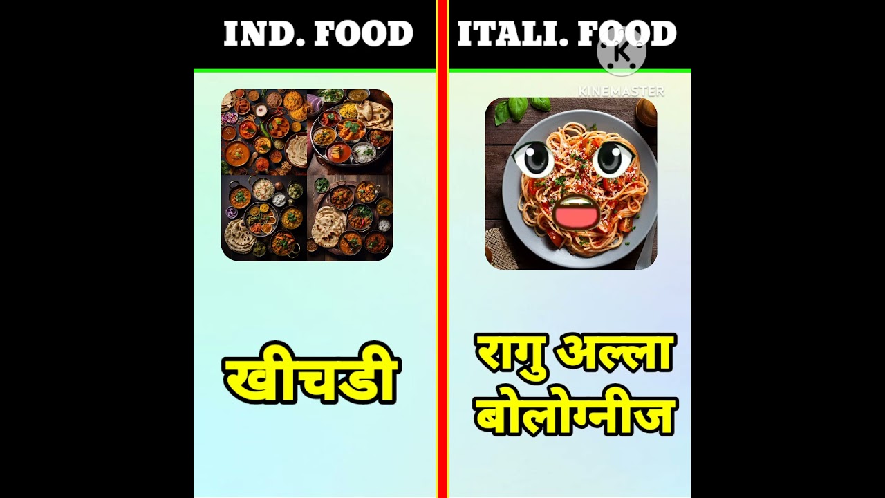 इंडियन फूड वर्सेस इटालियन फूड मैं हूं इंडियन फूड और मैं हूं इटालियन फूड तो जो जो इंडियन फूड खाना पसंद करता है वह लाइक और सब्सक्राइब करो चलो देखते हैं कौन जीतता है लेट्स गो हमारा नेशनल फूड है खिचड़ी और तुम्हारा हमारा तो नेशनल फूड है