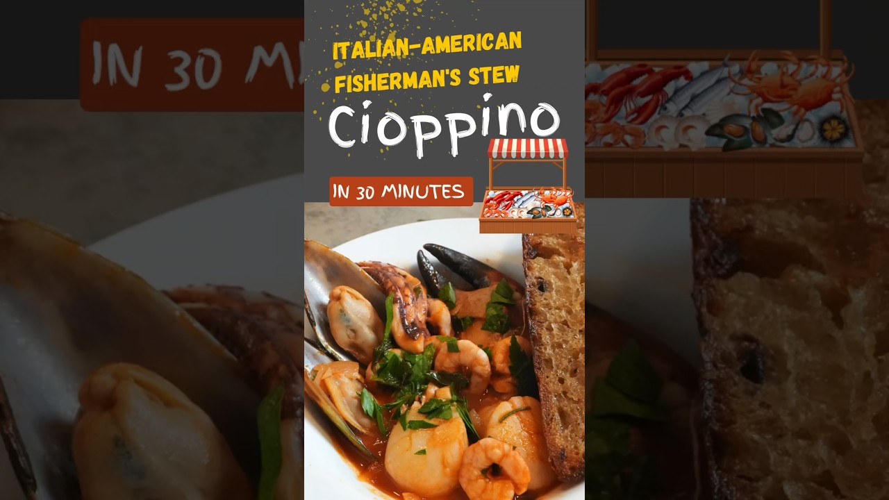 Cioppino is traditionally made from the catch of the day, which in San Francisco is typically a combination of Dungeness crab, clams, shrimp, scallops, squid, mussels and fish, all sourced from the ocean, in this case the Pacific. The seafood is then combined with fresh tomatoes in a wine sauce.