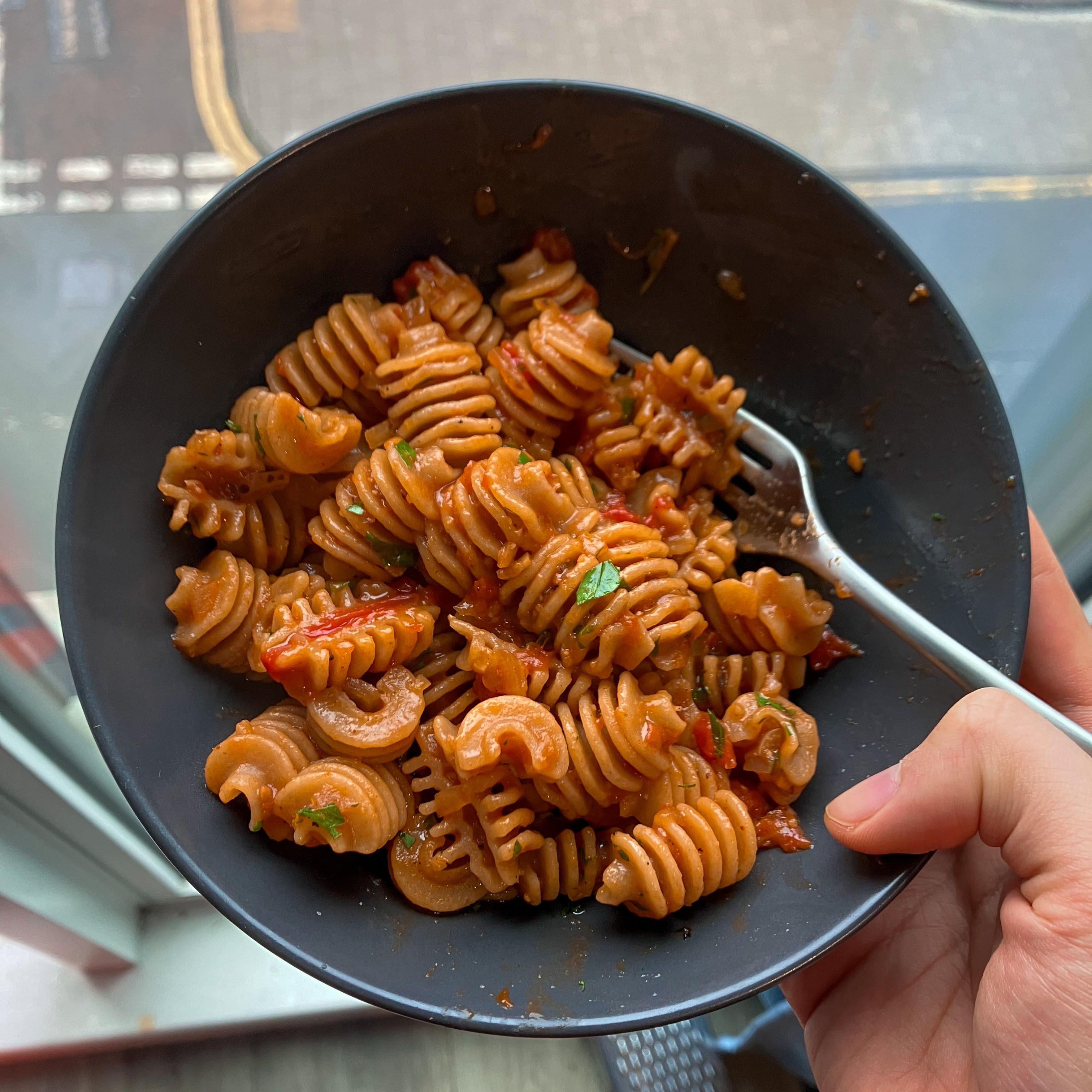 250 g onion, 1 head garlic, 1 can hand-crushed canned tomatoes and various condiments. This time I used cinnamon instead of oregano to spice it up and it really shines. Radiatori is also really good for saucy dishes.by Exciting_Bed6769 Homemade DishPastaWrite A CommentYou must be logged in to post a comment.
