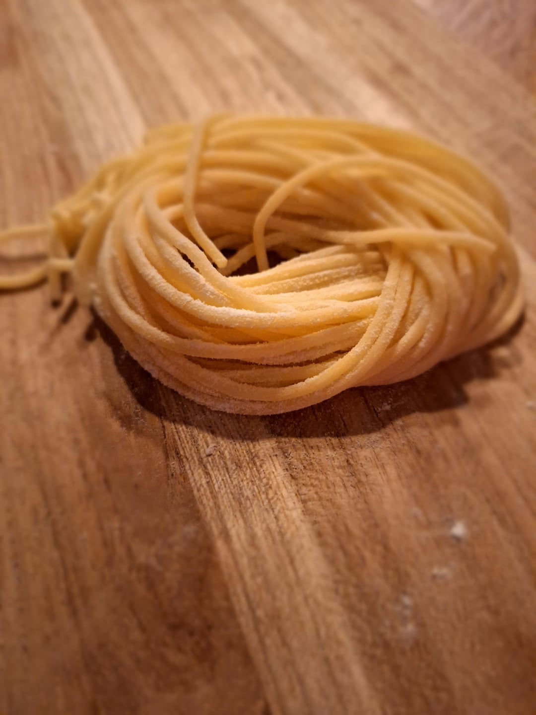 Pasta is made from typo 00 flower, eggs and a bit water.