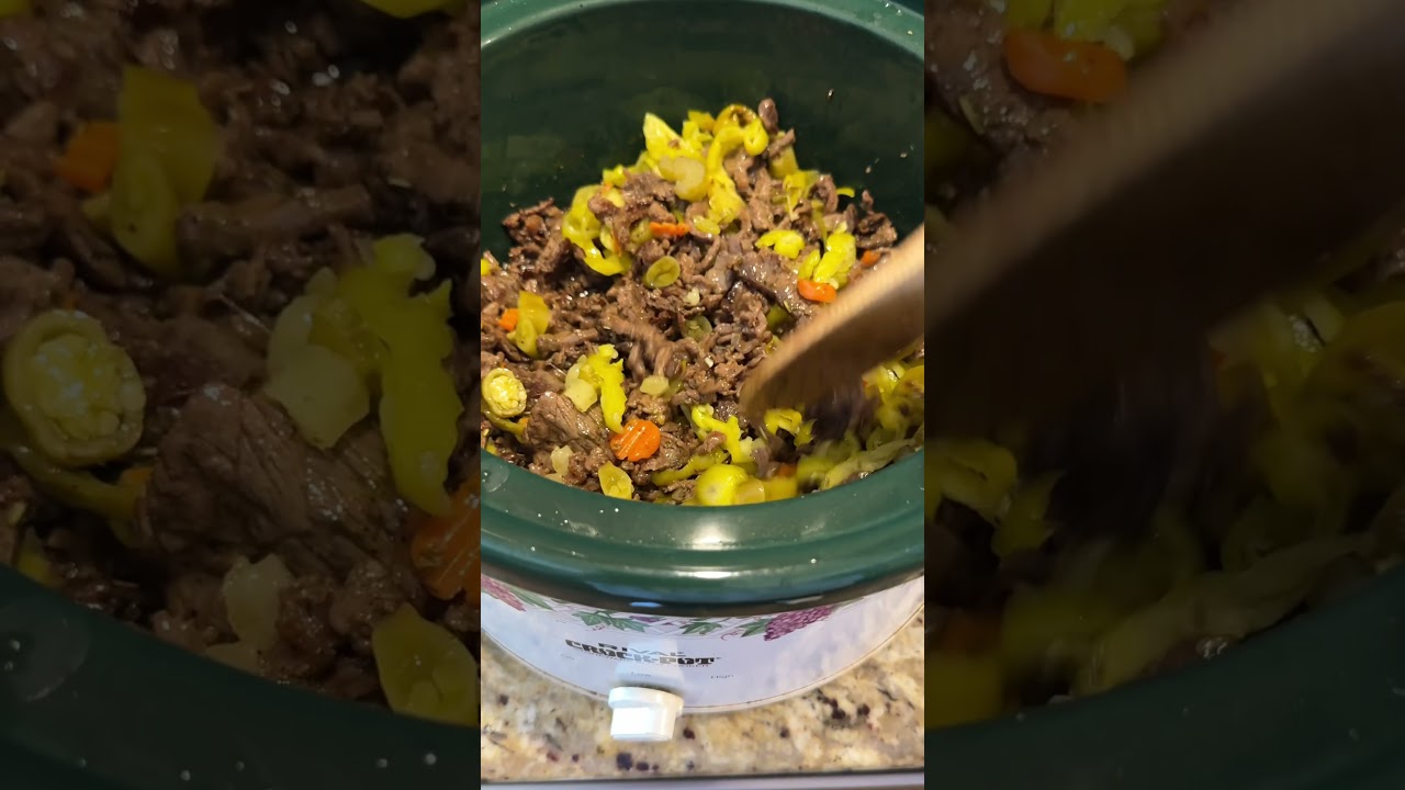 5. Add the pepperoncini peppers and juice. Add the giardiniera (do not add any giardiniera juice).