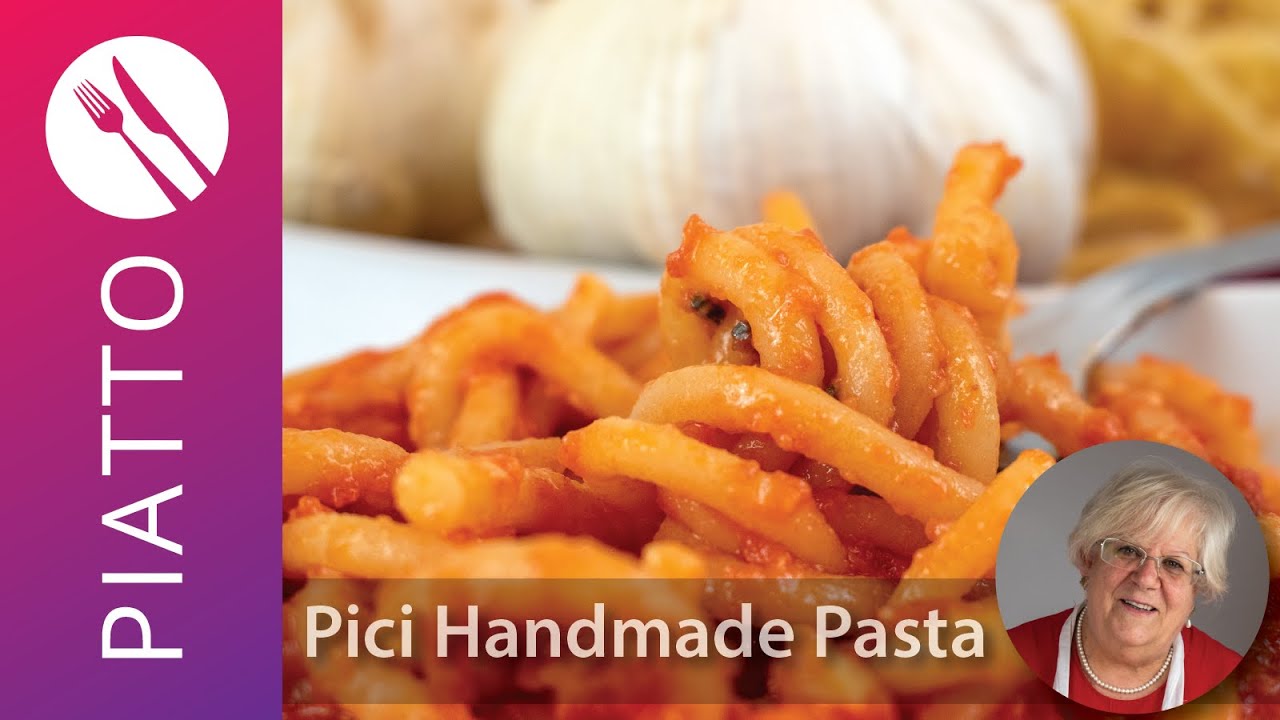 In this Piatto™ video recipe, an Italian Grandma will show us how to make handmade pasta recipe called ‘pici.’ This pici pasta recipe has one egg to 1kg of flour, though the egg is optional.