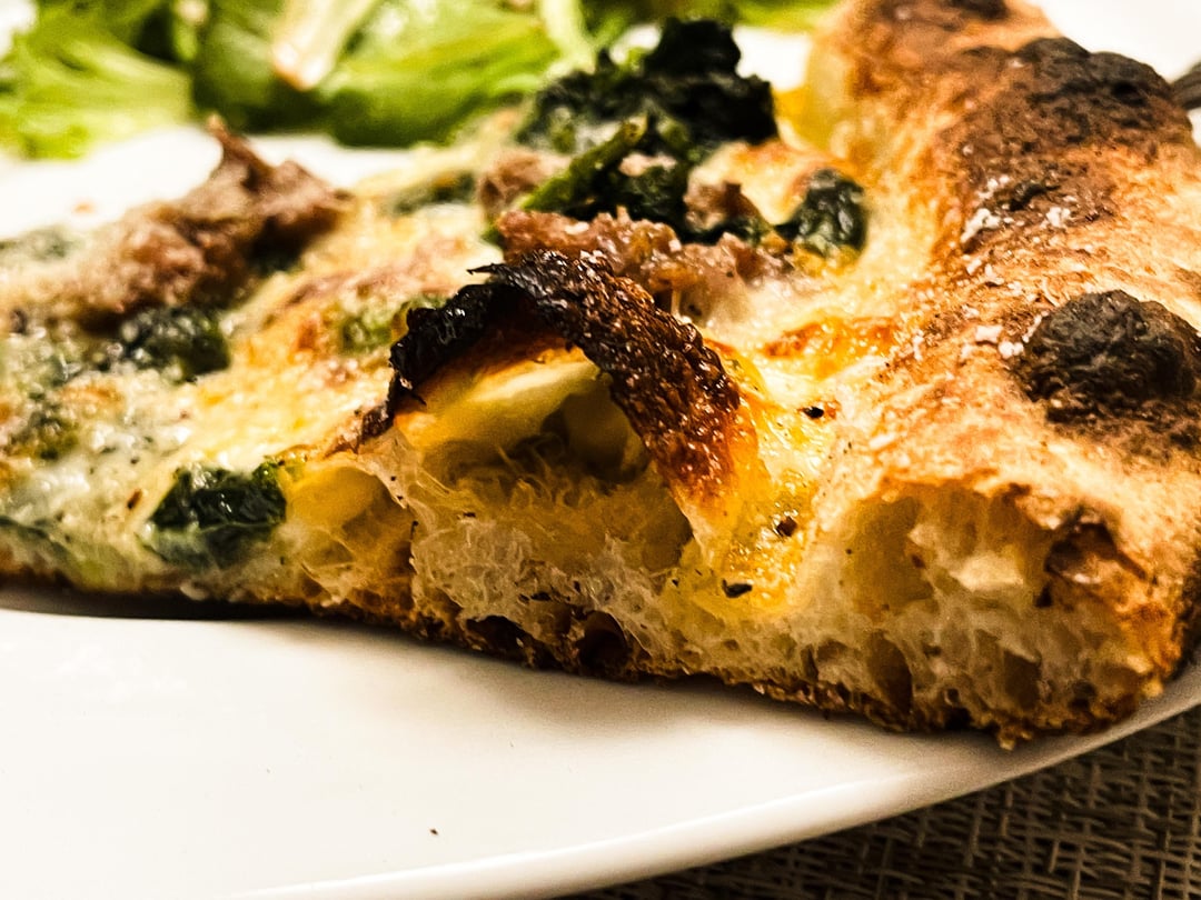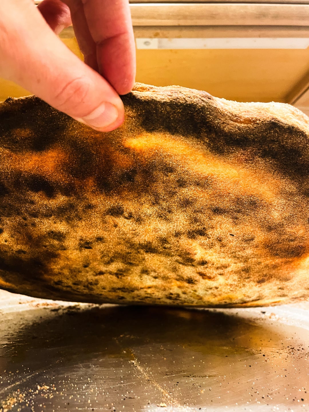 Dough was 48 hour cold ferment, leavened with sourdough and an additional poolish. Some durum wheat semolina in the dough as well….