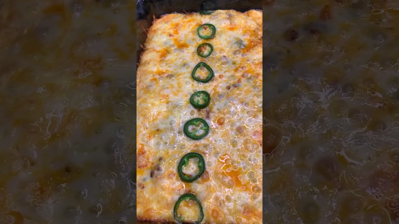 I just made the best breakfast casserole on the planet sprinkle some bacon a little green chili I’m going to give you a sneak peek knock that out of the ballpark add some eggs it wouldn’t be breakfast without those scrambled eggs and that bacon that we added oh my