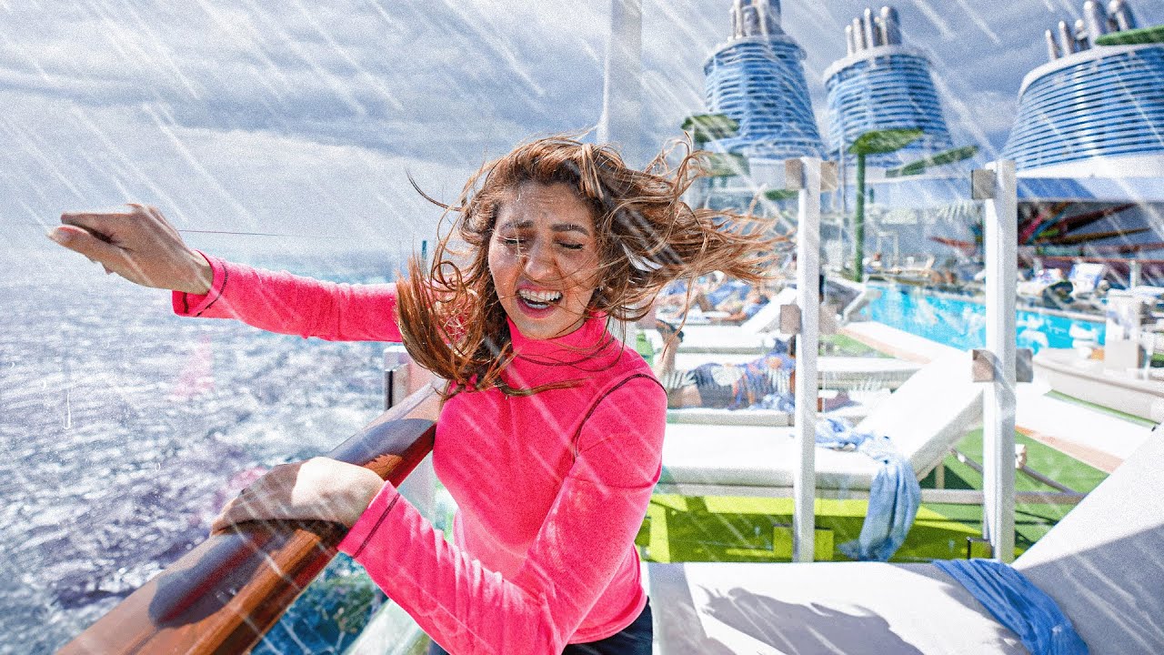 لذا، نحن متحمسون للغاية اليوم لأننا سنعرض لكم يا رفاق الجولة الكاملة لأكبر سفينة سياحية في العالم على الإطلاق. ونحن ذاهبون إلى المكسيك ، لذلك سنتوقف عند المكسيك. وشيء آخر ، يبدو أننا نمر بعاصفة. لذلك نحن مذعورين بالفعل ، لكن دعونا نرى كيف ستسير الأمور. كل هذا يحدث في فيديو اليوم. أنا خائفة حقا.