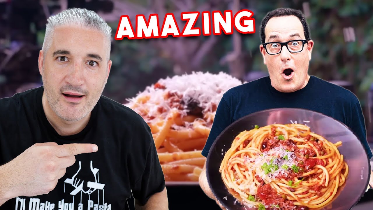 Level here’s how we do this there’s our bowl and here’s our drained pasta shake shake and in the beauti B Max so pasta should always be mixed with the sauce in this video we are reacting to Sam the cooking guy he made pasta lauta a few weeks ago just after I share my