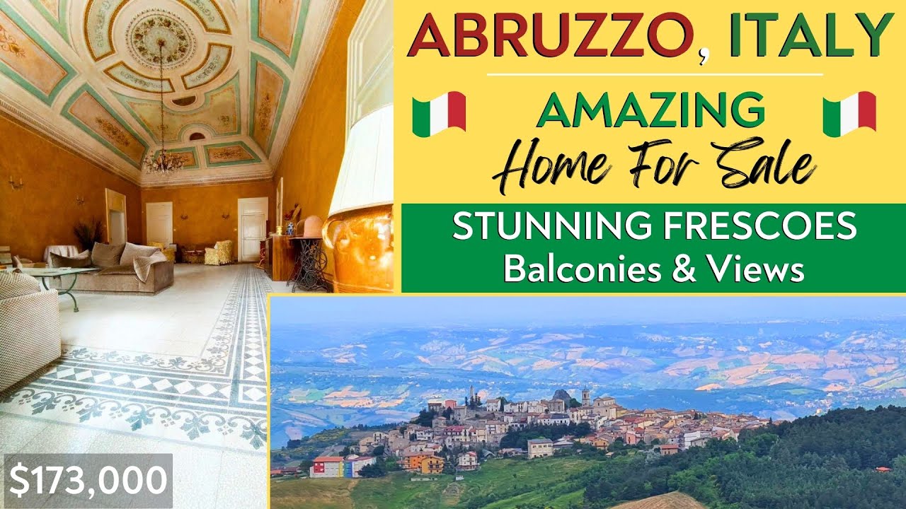 A beautiful 3/2 Italian home for sale in Abruzzo, Italy. This move-in ready house is a former palace with amazing frescoes, balconies, views and a 430sf garage. *With a population of under 20,000, this home qualifies for the 7% flat tax rate for foreigners (see link below for more details).* **ASKING PRICE: €160,000 ≈ $173,000**