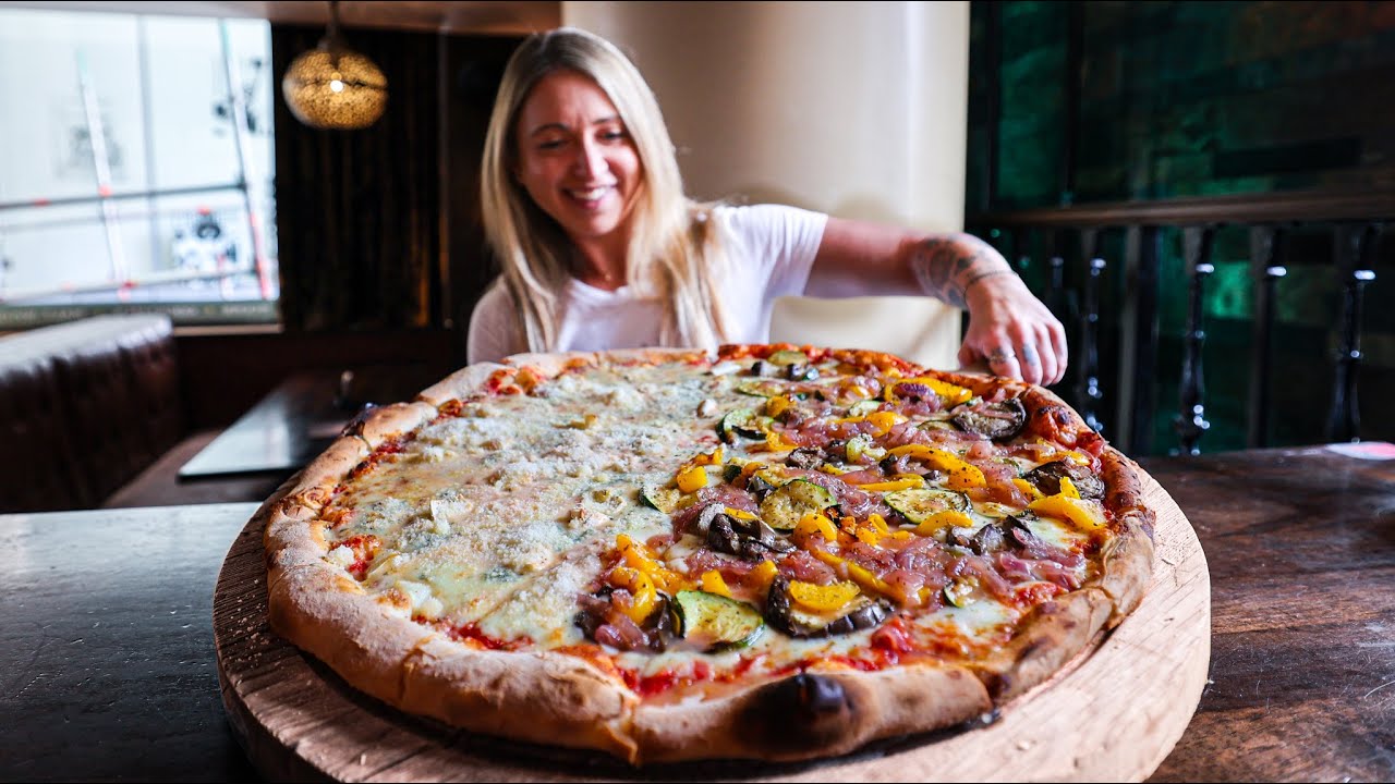 Taking on the Giant 50cm Pizza Challenge at Scott’s Bar and Kitchen in Brussels, Belgium! Over 95% of challengers have failed to take down this behemoth of a pizza, but winners who finish in under 30 minutes can earn their meal for free and a spot up on Scott’s Wall of Fame!