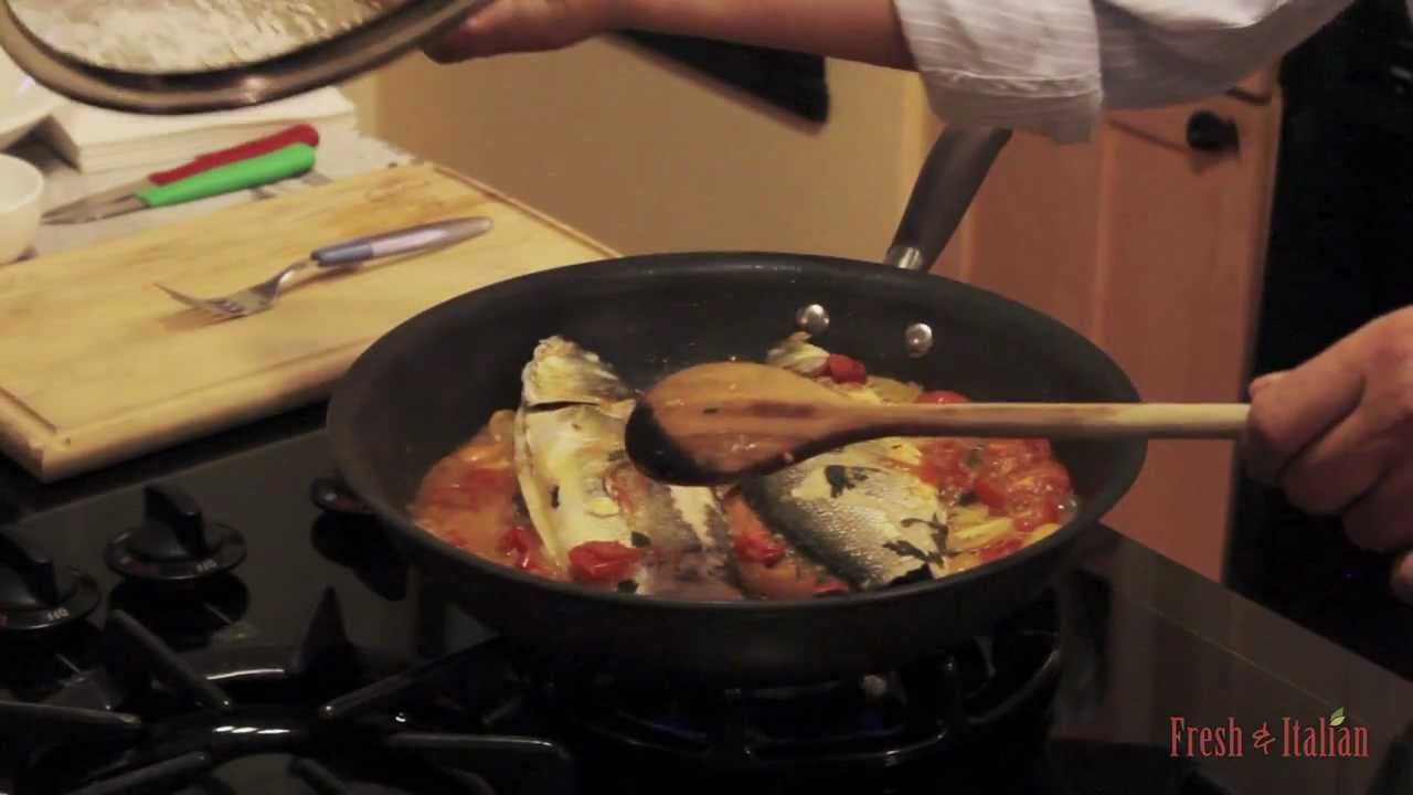 Sea bass fish in crazy water (Branzino all’acqua pazza):