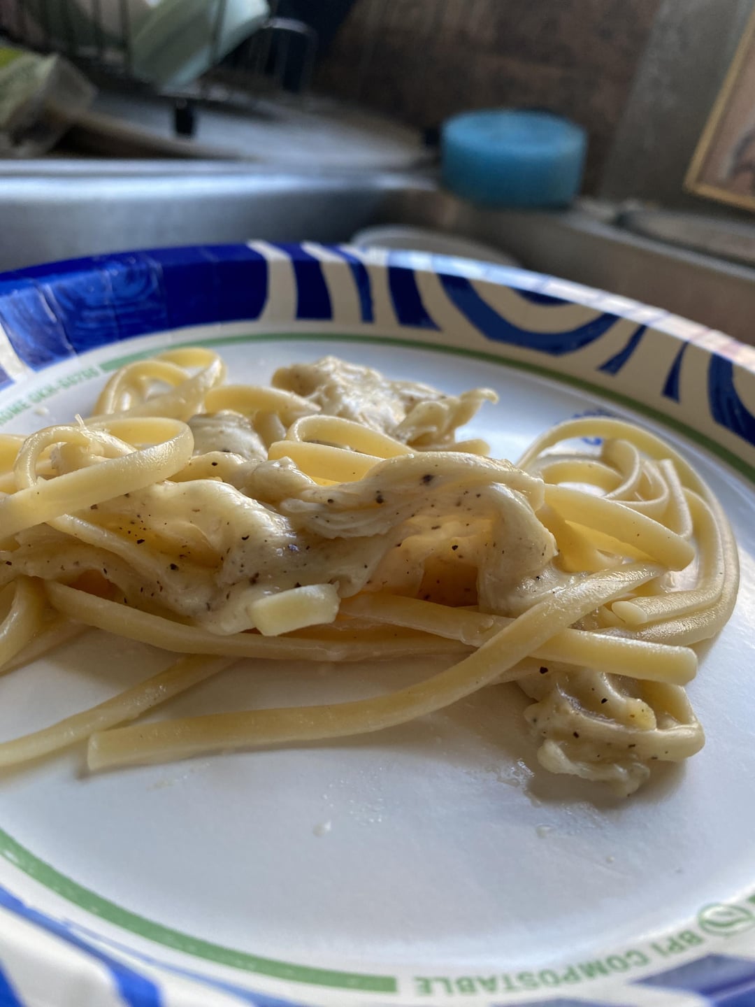 Your biggest mistake is used grated parm from a canister for cacio e Pepe, or anything really. The difference in quality between that and fresh grated real parm is immense, like they’re not even close to equivalent in quality. For a dish like this that is ~~Parmesan~~ cheese focused, the real thing is kind of a requirement