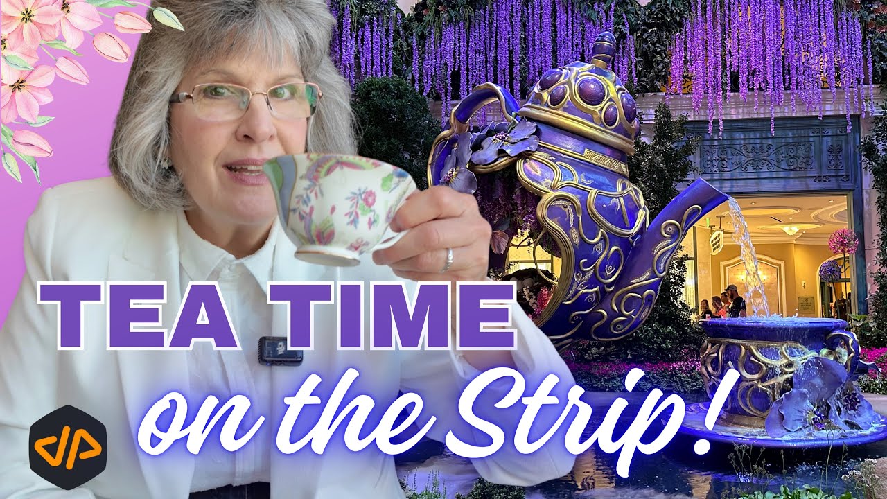 Fabulous walor Historia so get ready because this adventure starts right now Today’s tea infused adventure takes place at two juwels on the Las Vegas Strip up first bagio we’ll start here as all our bagio visits do in the lobby behind the front desk is the teaser for the conservatory theme teapots butterflies and lots of Purple as ever the tall vases around the lobby are spectacular it’s barely 7:00 a.m. on Friday morning so as we enter the conservatory the up lights are still on the lighting will change as we explore this Enchanted tea party and daylight makes its way into the space Welcome to the spring 2024 theme at Bellagio Conservatory tea and tulips think of it as stepping into an enchanted garden tea party where the teapots are giant sized and the florals create a vibrant Symphony of color and those aren’t my words they’re bagios here’s some thoughts on the theme from designer