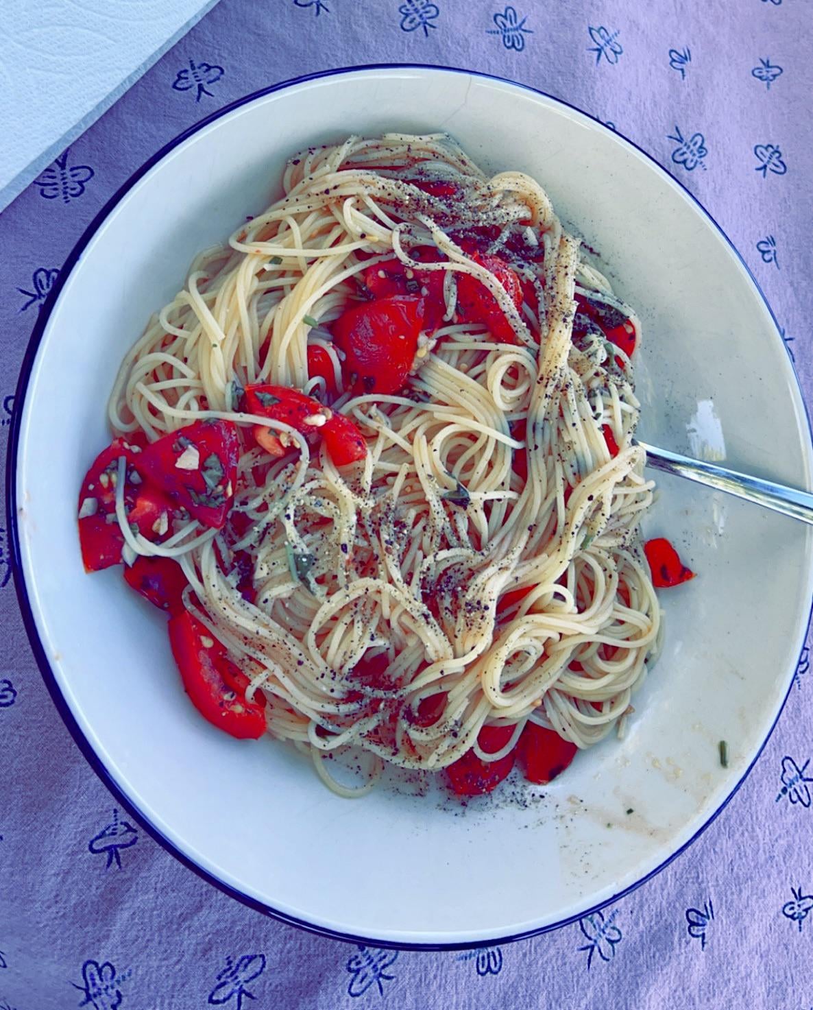 angel hair pasta w/ sliced tomatoes, garlic, Brie, basil, salt & pepperby princess-f33t Homemade DishPastaWrite A CommentYou must be logged in to post a comment.