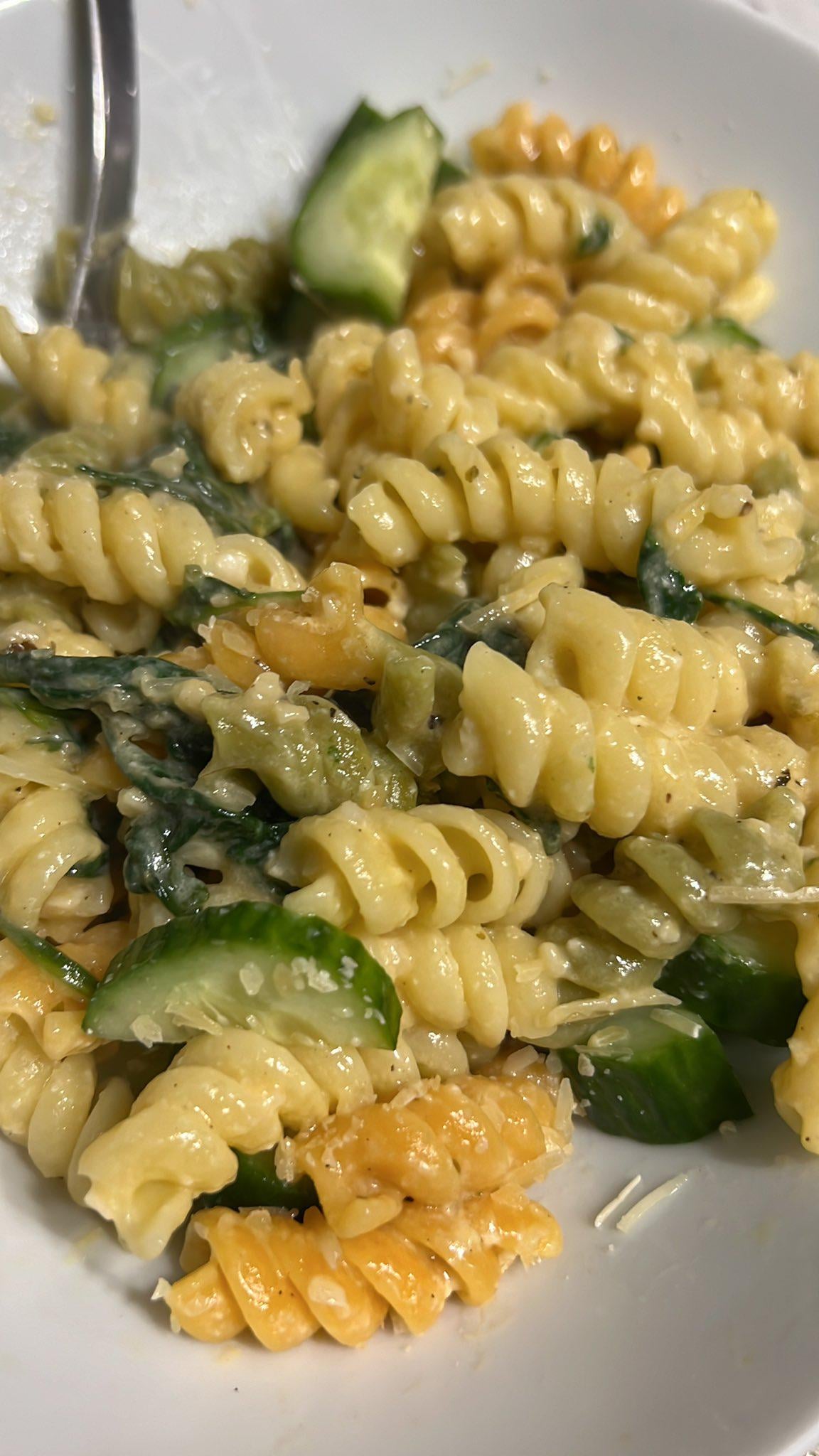That’s crazy. I just made the same thing but without the cucumber. Even used fusilli