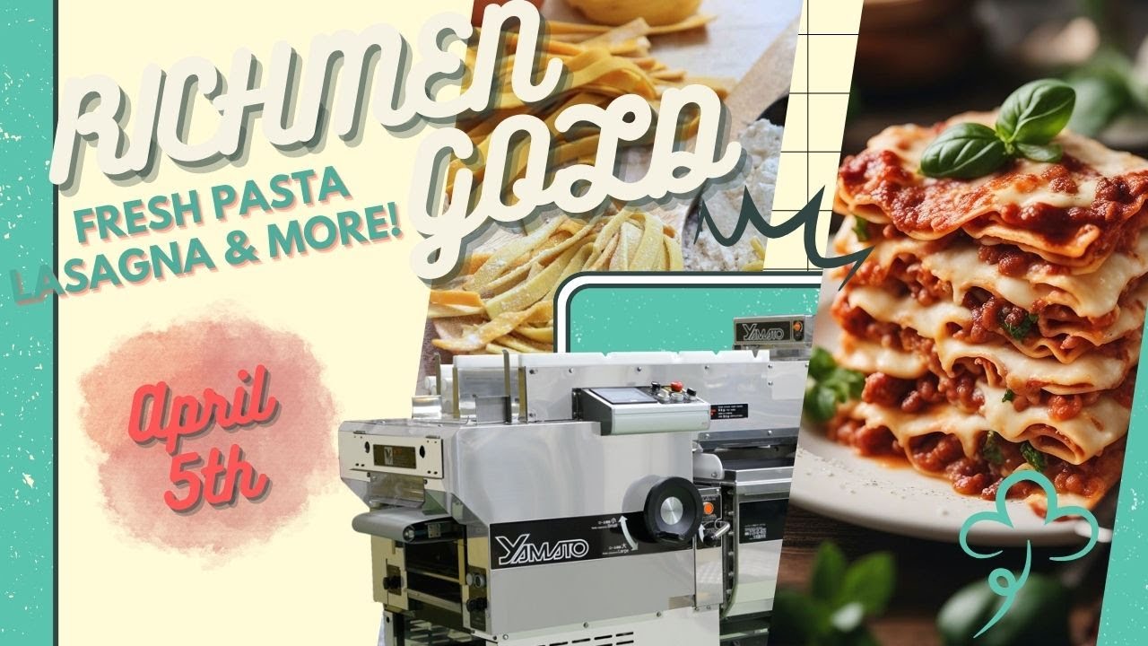 Join our online workshop to discover how our RICHMEN GOLD machine can effortlessly craft Italian pasta, lasagna sheets, and much more!