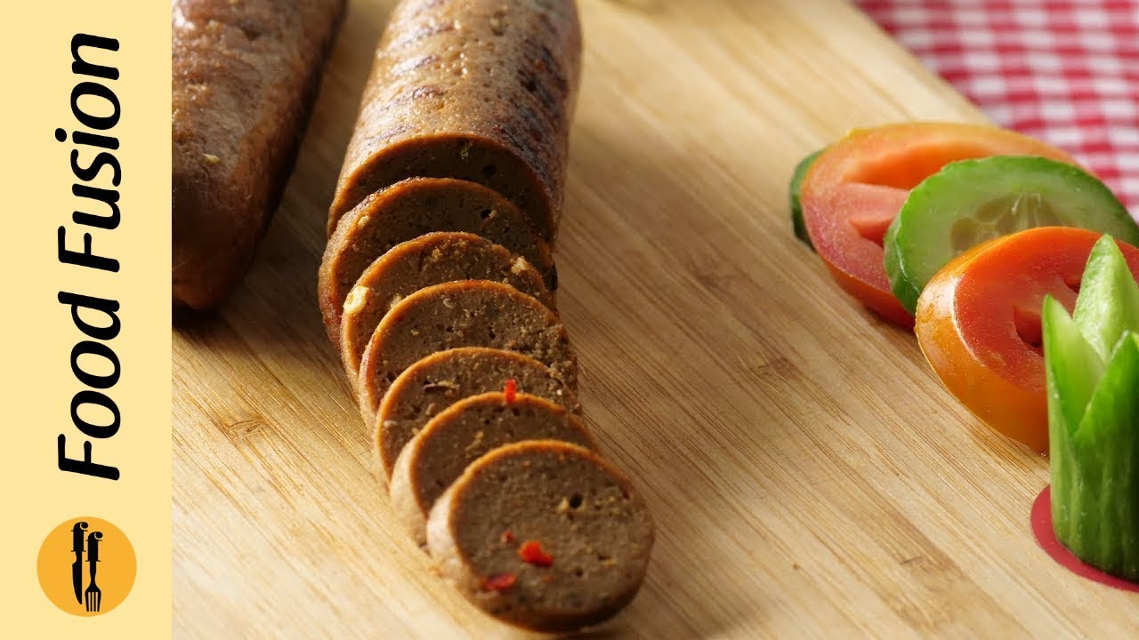 -Boiling water mein tayyar sausages dal ker 8-10 minutes kliya boil ker lein aur foran ice chilled pani mein dal ker 5 minutes kliya chor dein phir cling film ko nikal lein.