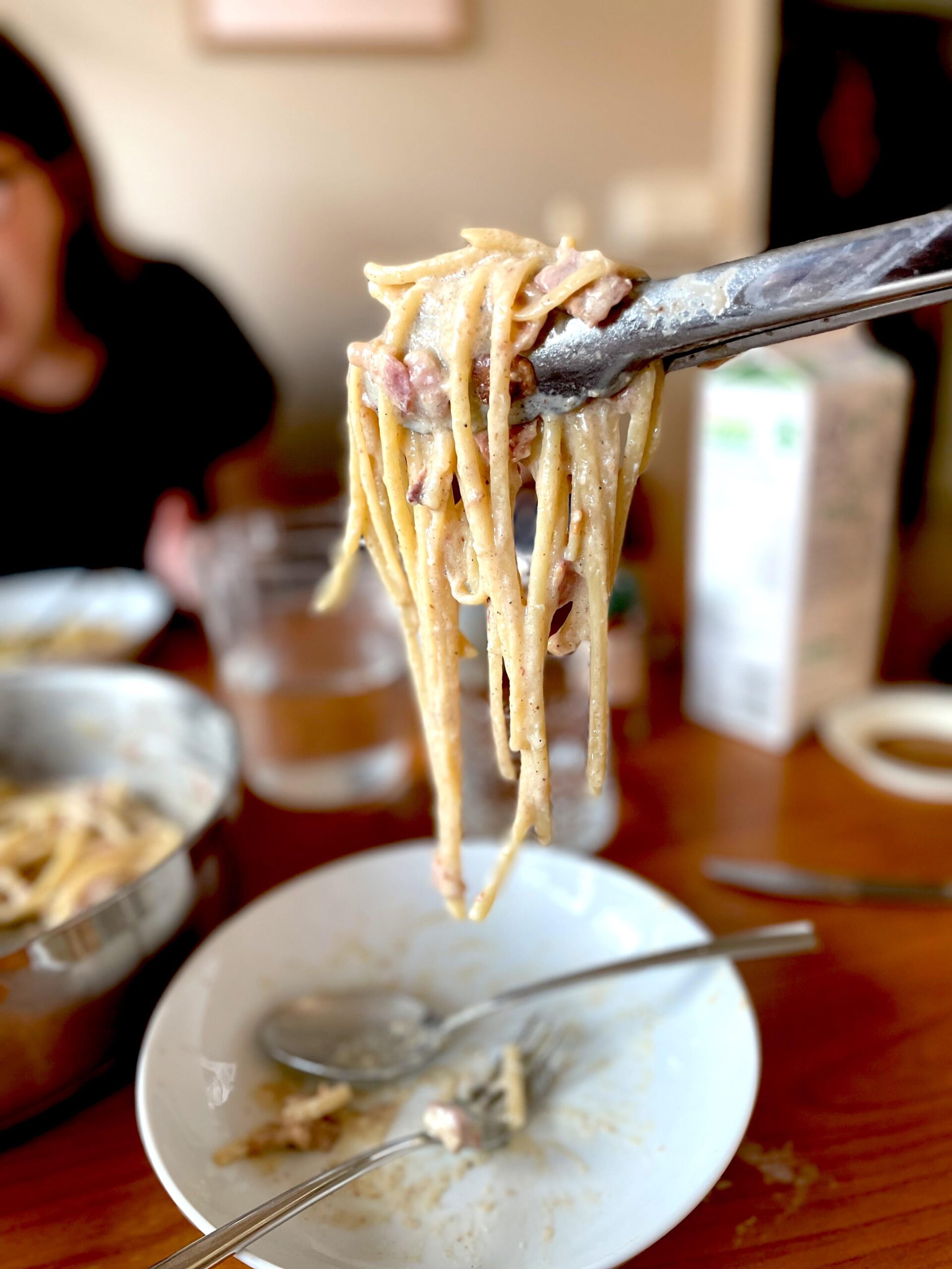 Carbonara. Linguine, pork, eggs, pecorino, black pepper