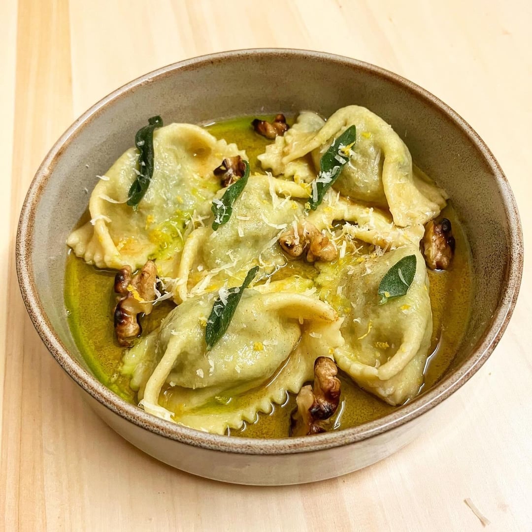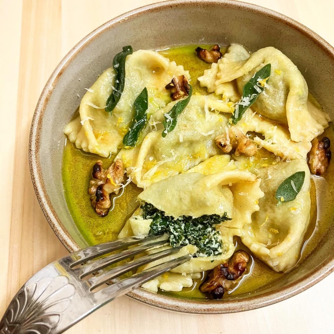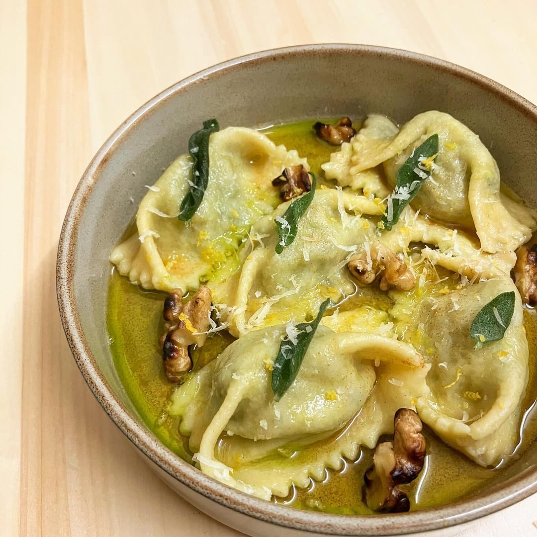 Spinach and Ricotta Agnolotti, Browned Butter Sauce, Crispy Sage