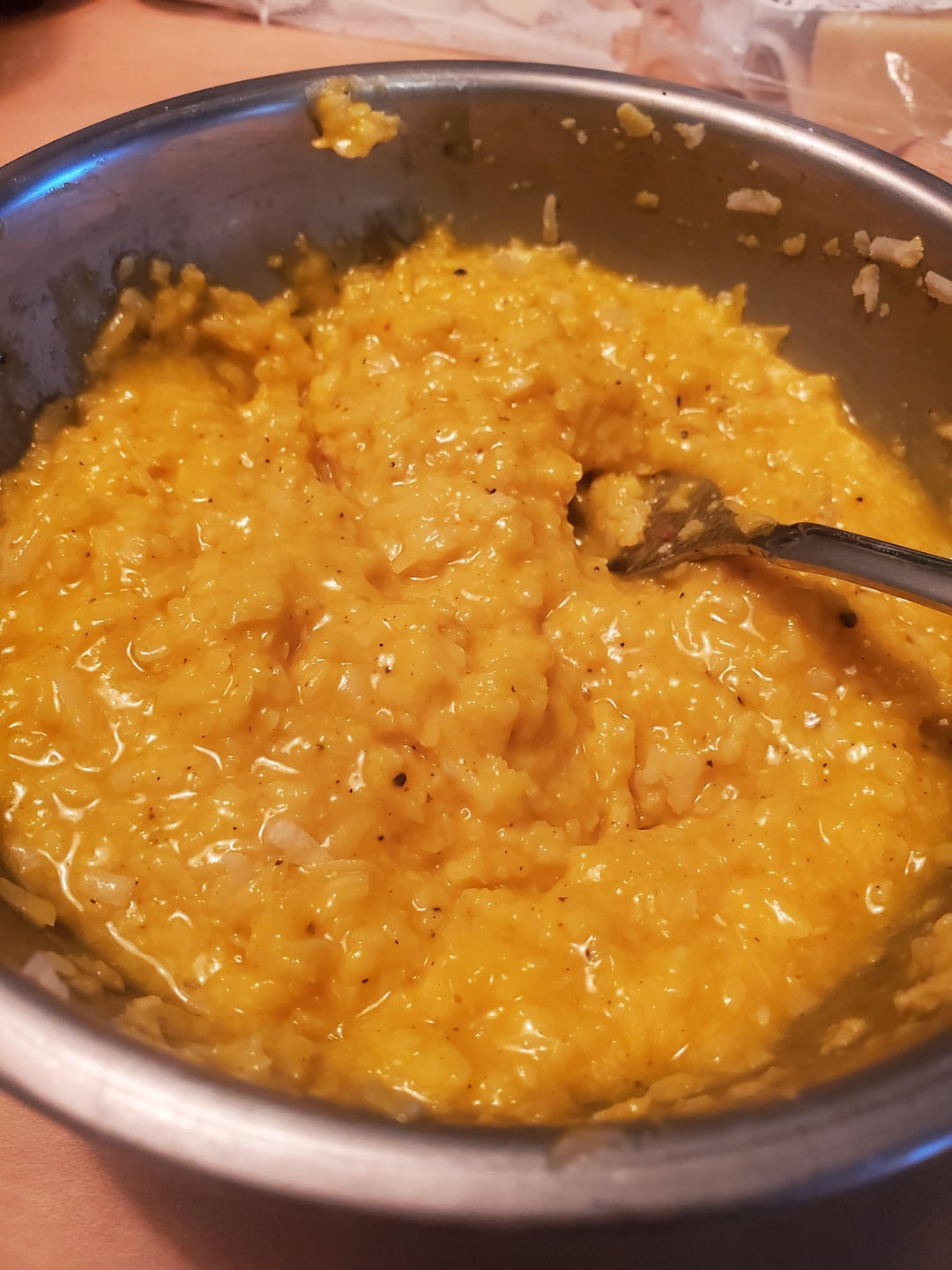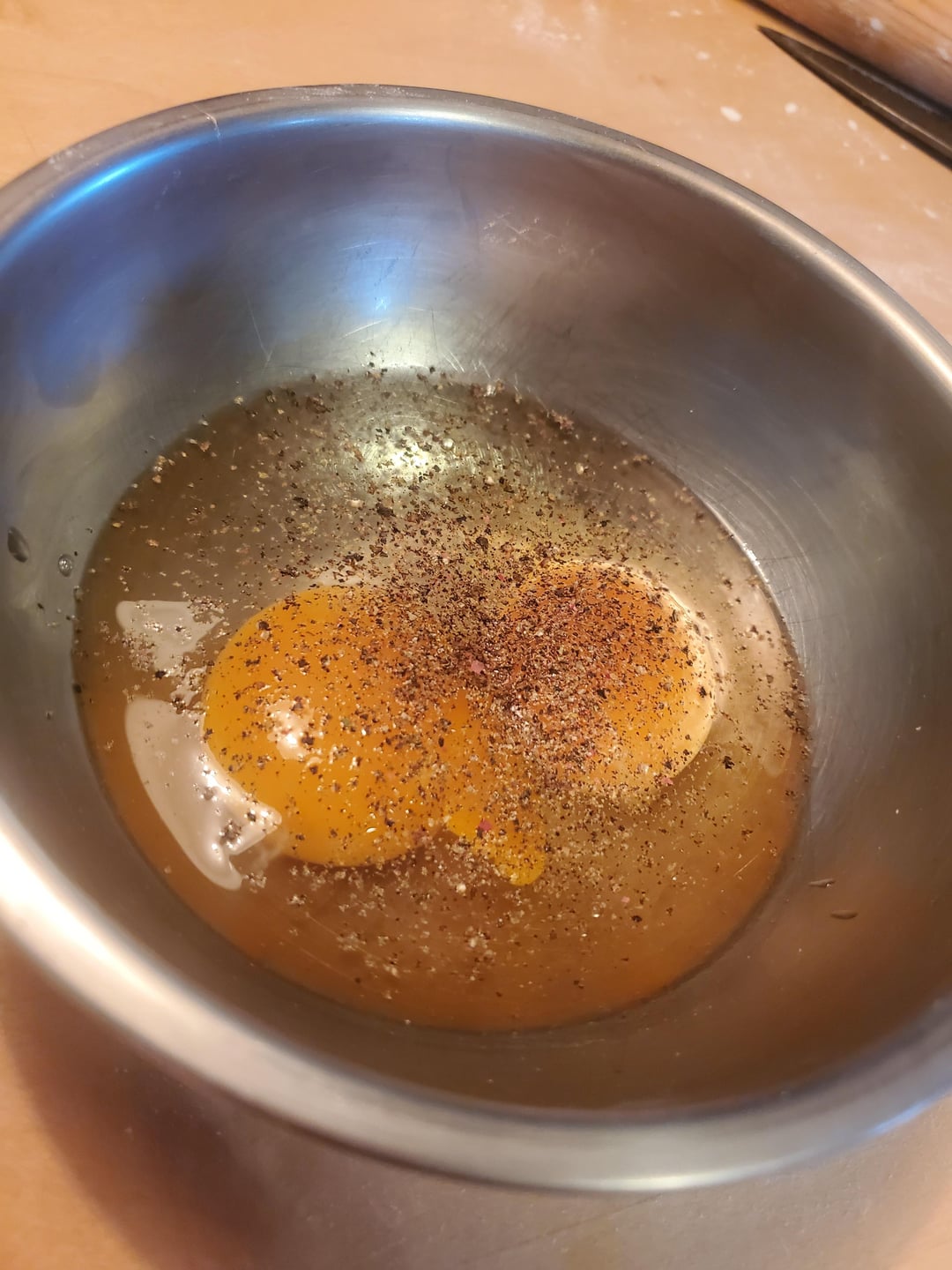 5- mix in grated parm & pecorino to the eggs & pep until this consistency
