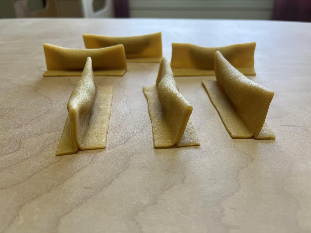 I saw this pasta shape on IG from Pasta Maker Nicolas Potoglou. Such a beautiful shape and I was so excited to try it. So much fun to make. It’s a variation of an old shape from Ligurian, called Mandili de sea meaning silk handkerchiefs.