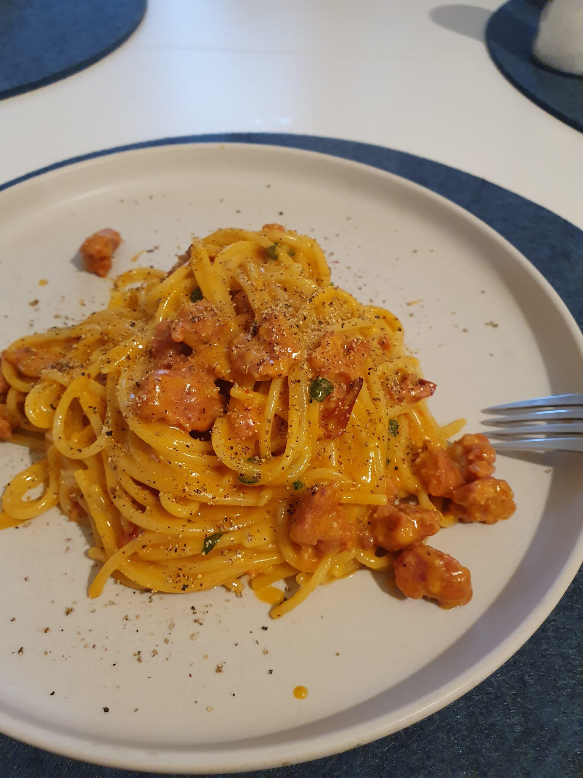 Spaghetti carbonara style with salsiccia and garlicby pornopaule6996 Homemade DishPasta 5 Comments Nezuko_019 2 years ago It looks yummy Mykitchencreations 2 years ago Looks delicious, did you use chicken or lobster? cbasti 2 years ago Why is it so red? Is it the salsicia or is it just the lighting and the egg yolk? Pure_Space_2248 2 years ago Yummy ♥️ The recipe , please !? StrategicallyLazy007 2 years ago Looks amazingWrite A CommentYou must be logged in to post a comment.