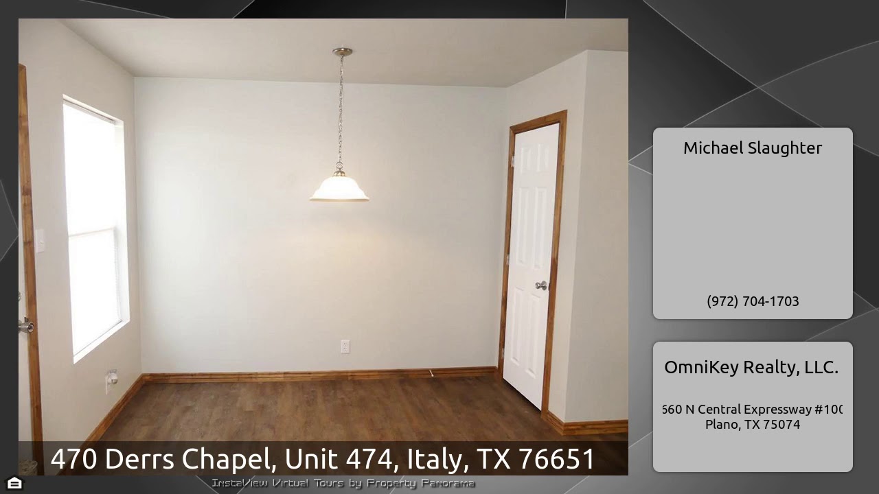 The Virtual Tour for the property at 470 Derrs Chapel, Unit 474, Italy, TX 76651 listed for $1,075: Other homes for sale by Michael Slaughter of OmniKey Realty, LLC.: *1 WEEK FREE RENT WITH IMMEDIATE MOVE IN!* Wonderful fairly new spacious 3 bed 2 bath unit with large kitchen with included fridge, large bedrooms and walk-in closets, laundry with washer and dryer hook ups and more! Huge living and dining area! Great location near highway, shopping, schools, and more! Don't miss out this property could be yours! HURRY apply online today!