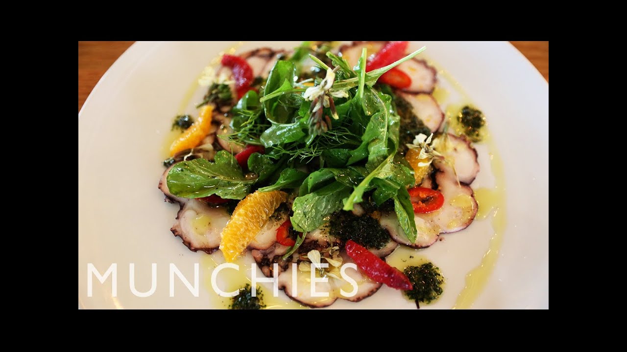 Bestia, the word “beast” in Italian, is the name of the restaurant featured in our latest episode of Munchies. It’s owned and operated by the biggest promoters of PDA since Billy Bob Thornton and Angelina Jolie, Ori and Genevieve, who at the time of filming were expecting their first child. They’re in charge of savory and sweet, respectively, for their Italian food, which is also heavily influenced by Ori’s Israeli background. Our night started out at Craig Thornton’s supper club, Wolvesmouth, then moved on to local watering hole Tony’s. Since Genevieve was with child and couldn’t participate in imbibing, she demanded to order three slices of pepperoni pizza from Pizzanista, which—in our eyes—is a great compromise. Once we got back to Bestia, Ori cooked up his dad’s falafel recipe while Genevieve made what is quite possibly the best caramel popcorn we have ever seen, the snack she considers a pregnant woman’s dream.