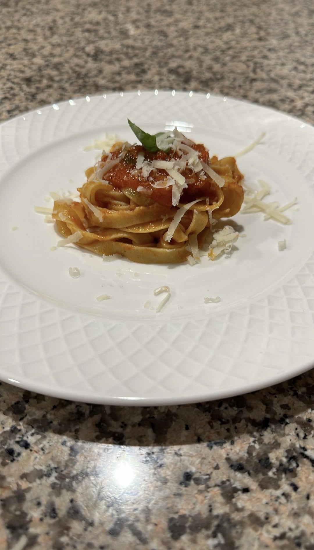 homemade fettuccine (with fresh oregano in the dough, thats why it has kind of a green hue lol), homemade sauce, topped with grated parmigiano reggiano and a basil leaf. as leonardo da vinci said, “simplicty is the ultimate sophistication”. the second slide is me handing the plate to my mum haha