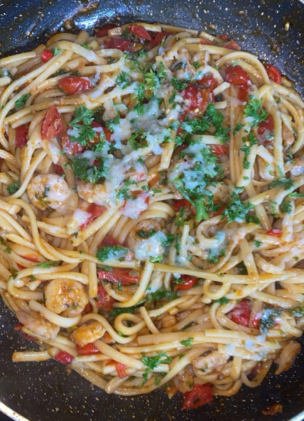 Prawn linguine with cherry tomatoes topped off with parsley and parmesan. Really simple but delicious recipe with store bought linguine. Recipe crafted by me. by TeachingTime3029 Homemade DishPastaWrite A CommentYou must be logged in to post a comment.