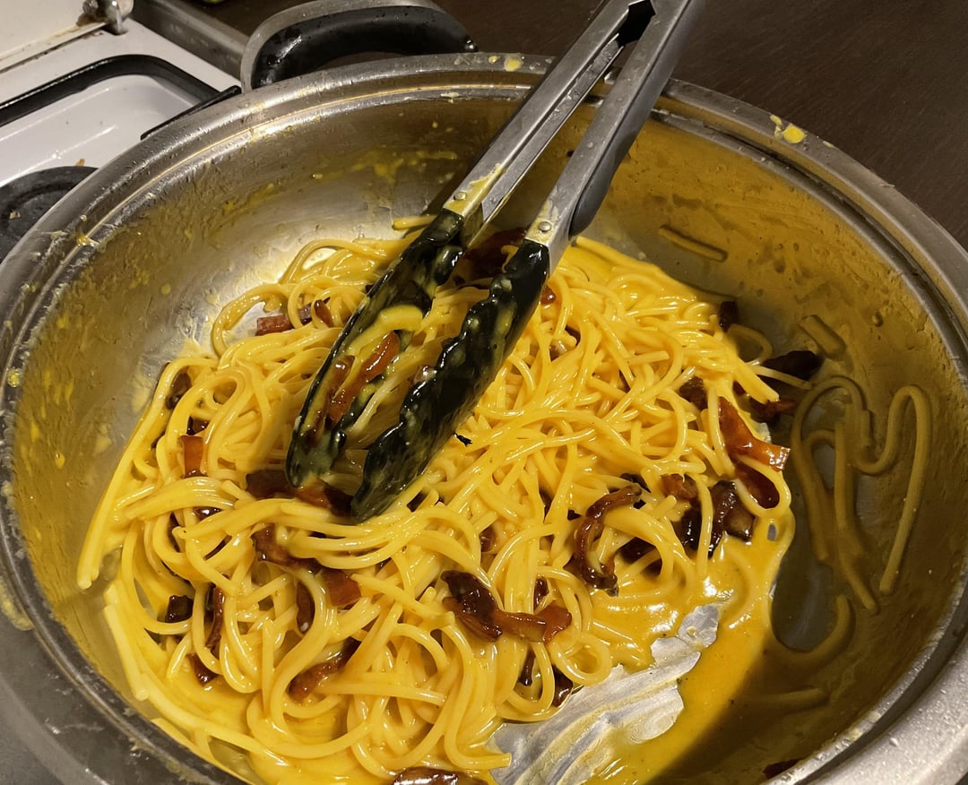 - Make Sauce: Off heat, quickly mix in egg and cheese mixture, adding pasta water as needed for a creamy consistency.
