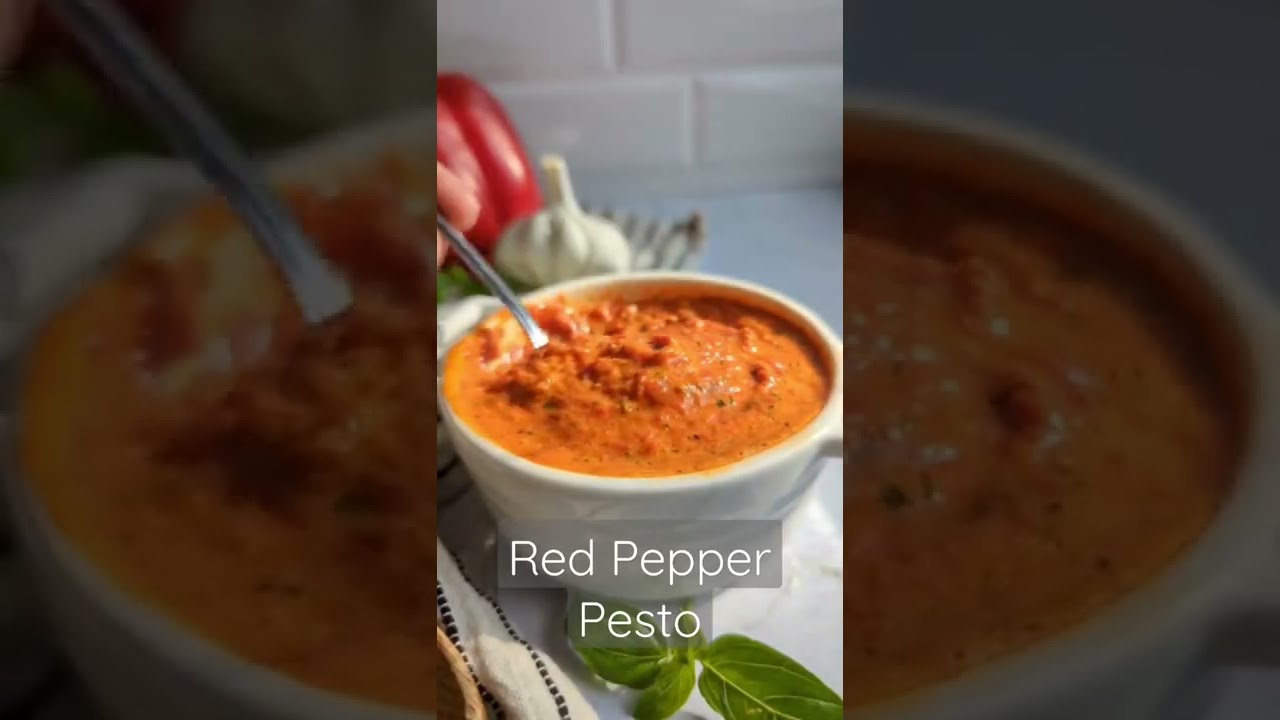 Get the full recipe here: https://theherbeevore.com/red-pepper-pesto-sauce-recipe/