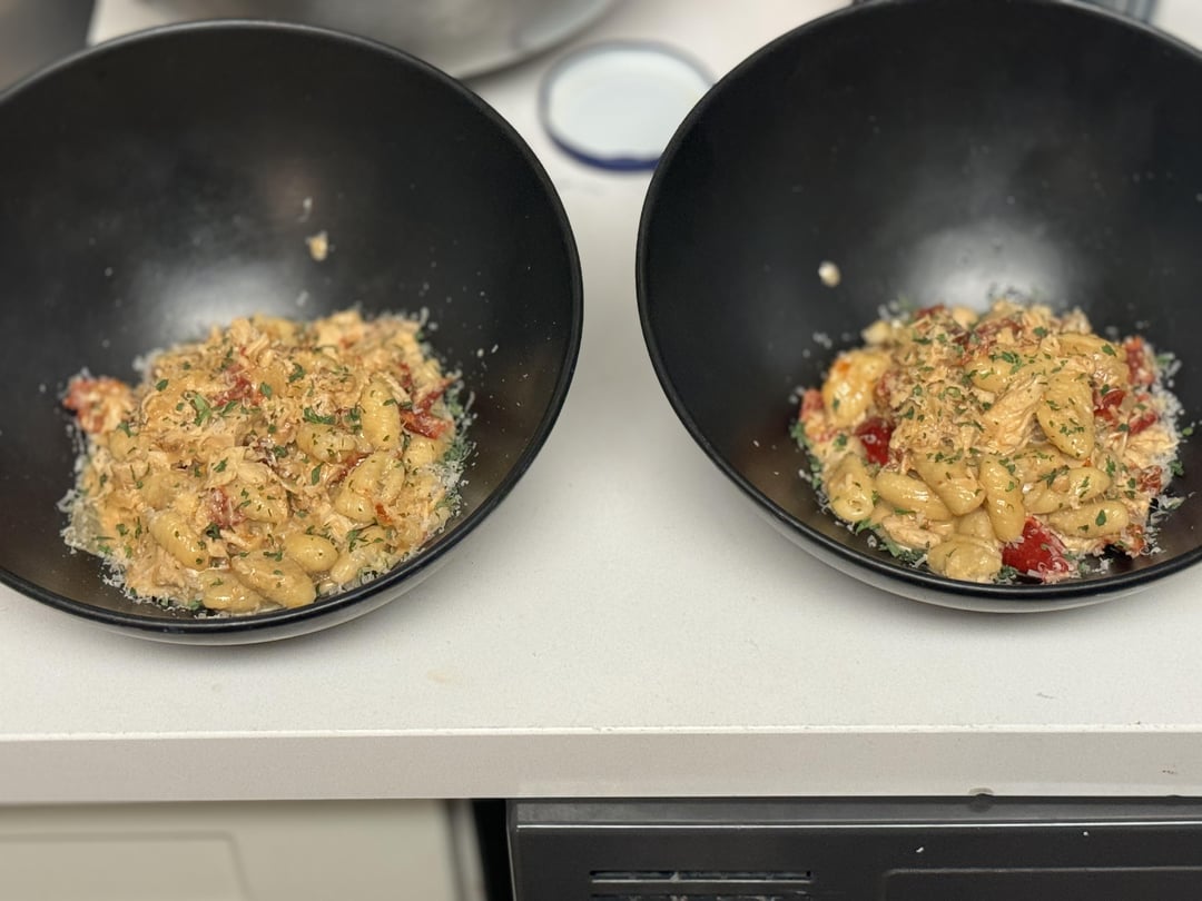 Threw in the Cavatelli to a pot of boiling water for around 3 min then into the pan w/ other ingredients.