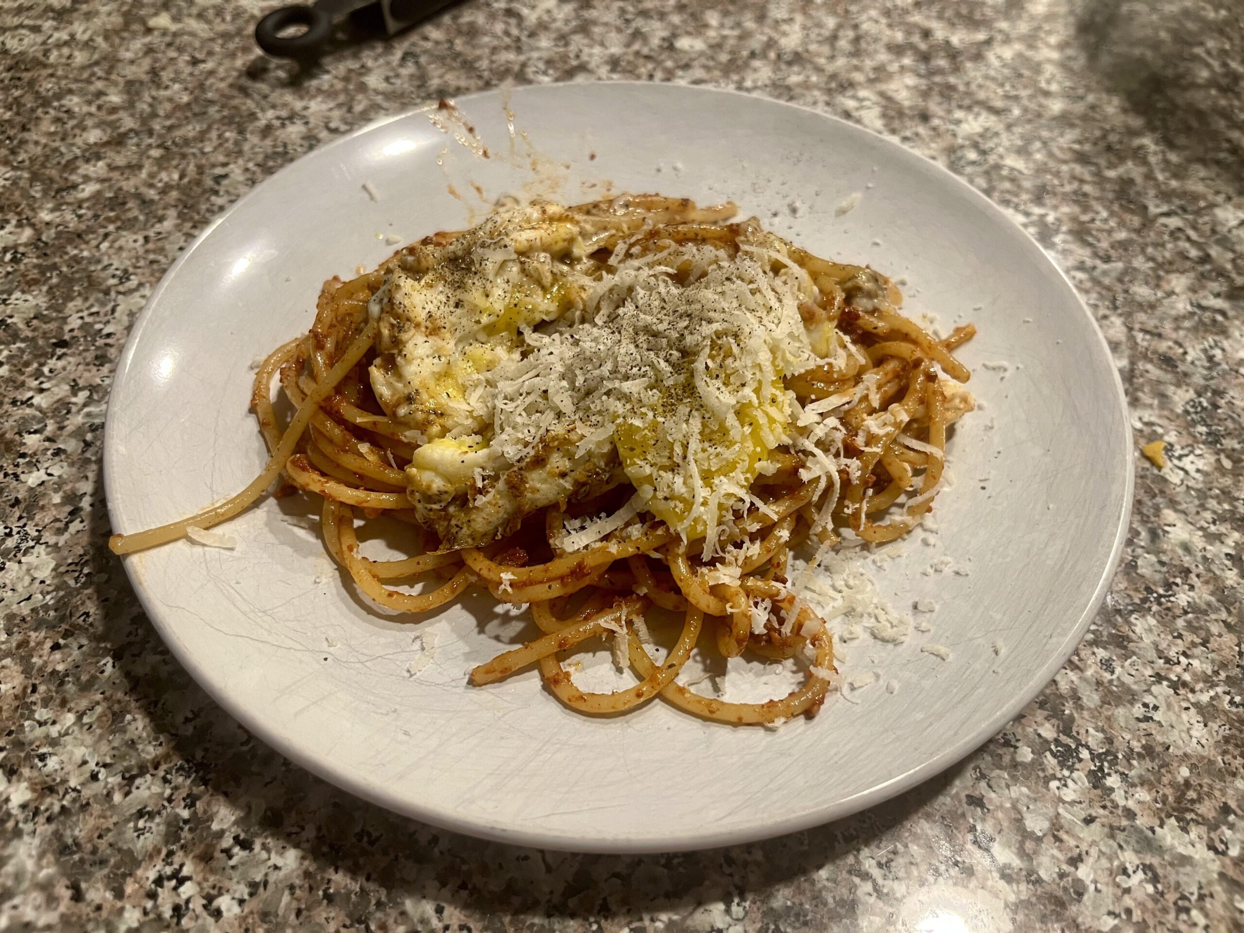 I wanted a breakfast burrito, but didn’t have tortillas…chorizo,egg, and Parmesanby theboredfemme Homemade DishPastaWrite A CommentYou must be logged in to post a comment.