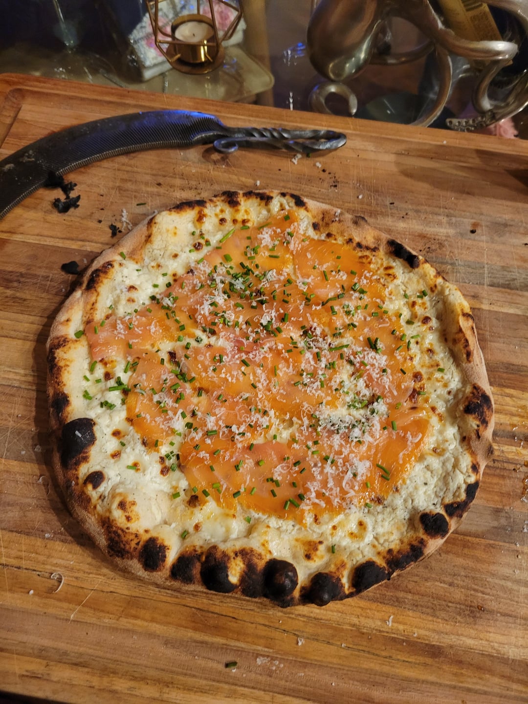 Off the top of my head I'm going to make a potato with caramelized leek and thyme pizza, maybe with creme fraiche as the base if that's OK for her (will ask) but I can't think of what else would be good.