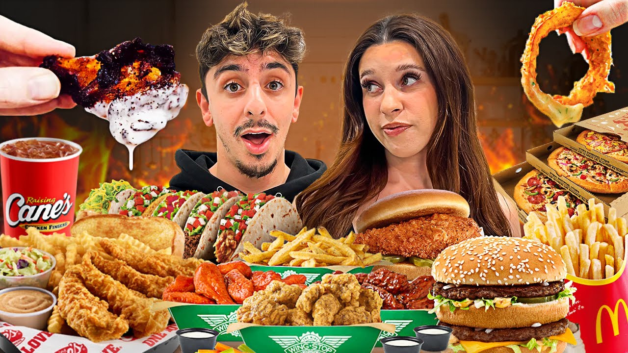 all right what is going on guys it’s your boy FaZe rug welcome back to another video I’m here today with Palin and we’re going to be doing a mukbang video as you can see we have so much food in front of us we didn’t just want to stick to one food for the mukbang so we got six different fast foods not the healthiest but I’m still excited you know I’m so hungry so we got Taco Bell Pizza Hut McDonald’s Wing Stop in and out and raising canes yum I’m starting off with the Neapolitan Shake cheers guys mukbangs are some of my favorite videos to do because we get to just sit here talk have a normal conversation to you guys between me and Kailyn I posted on my Instagram to ask us some juicy questions and we got a ton of responses you ready I’m ready well first things first let’s dig in all right liquid out of all the food here what’s your favorite I go through different phases me too it’s like a tie between in and out and Canes yeah I love McDonald’s fries McDonald’s fries are top tier all right we’re going to start off with a question by Brenda she asks do you regret putting your relationship on social media and if so would you still be dating I would say yes and no to me regretting putting it on social media because I always kept it real with my fans since day one and if I’m dating a girl I’d love to share her with you guys and okay pause share her on my YouTube channel for you guys to see I think in the beginning everything was good everything was going well the feedback was amazing until more later on where you started being in my videos a lot more and we started seeing more comments and a lot of people speculating things that just weren’t true I feel like it would cause a lot of problems internally between Kalyn and I wear we were just like damn it was kind of a mistake putting it on social media but at the same time I want to keep it real yeah we didn’t really get the chance to have like a private relationship people just speculate related like little tiny things for example if he was collapping with a girl it’s like oh my gosh like this is disrespectful to Caleb and your guys’s eyes I guess sometimes you guys saw it as disrespectful so for us we just kind of thought okay let’s take a step back take it offline and see how it worked out that way instead a lot of people might have seen a podcast I did with Roman Atwood and I said that the breakup video was fake the breakup video we made fake it wasn’t really fake we did agree on taking a break around that time us taking it offline definitely did bring us closer I’m pretty happy with where we’re at right now yeah I agree before we continue with the questions Wingstop actually came out with three new flavors the new flavors they got are the Meltdown crunch time and pure Mayhem do you want one I do but Wingstop Ranch I don’t think there’s another place that compares the Wingstop ranch we’re gonna get that dip right there I actually used to be a boneless wing kind of guy until I was introduced to this of course and I always watch people on Tick Tock eat wings and they just may make it looks so much better like when you get boned in I always get flats now I never get drumsticks cheers oh my gosh I’m gonna give that a Keith Lee rating that’s a 10 out of 10. everything is a 10 out of 10. Alejandro asked what’s the craziest spot you’ve done it at I’ve done what they’re talking about like making YouTube videos I don’t know but if I were to remember I don’t know if you’d agree it’s not even crazy it’s just those backseat of my car the rug Rover the OG days everyone knows that red interior Flawless do you remember that yes I remember that I remember that very you know what’s crazy that was actually our first time yeah I remember to this day I still think that Range Rover is my favorite car that I’ve ever owned if you guys have been watching me since 2016 you’d know what I’m talking about did you enjoy the back seat oh yeah like the back seat of the Range Rovers they had like massages there’s a fridge very spacious very spacious like it was great it was a great time a lot of people have been wanting me to be more raw in my videos and I love it I do a lot of Challenge videos I do a lot of different types of videos now but I don’t see that as a bad thing I personally enjoy doing videos like that I feel like my channel has evolved where it’s not only like daily vlogging at the end of the day I’ll never forget my roots whether it’s gaming vlogging and I’ll always sprinkle that in every now and then just like this like these are some of my favorite types of videos to record not only do I get to be more raw and real in front of the camera but I get to eat food man you get to eat food and you get to tell people like your real thoughts your real answers like you don’t get to sit down and be raw as often especially with a lot going on now like this is the perfect time Caitlyn this question’s for you what was kalyn’s first impression when she met rug I know your first impression but I’d love to hear it from you I’ve known Brian for such a long time I don’t know if you guys actually know this but Jessica is my best friend I’ve known her my cousin since the second grade so that’s like over 20 something years honestly that’s how I met Ryan I’ll be honest I wasn’t all that nice to him this takes it back to like Elementary School type of thing like you’re just mean to the guy you like that’s your way of flirting that was my way of flirting with him I would pick on him can they hear it from me no she doesn’t like when I bring this up first then it really was I promise you I’m not gonna make it worse there’s a difference between being mean and flirting and just straight up being mean I wasn’t mean okay she wasn’t mean like that but like it was very hard for me to understand that she liked me like she would obviously agree to hang out and s