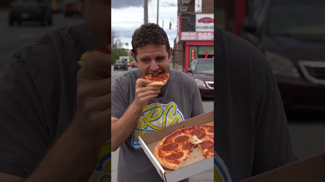 we are here at Isabella Pizza on Isabella Street in our nation’s capital Ottawa Ontario Canada so let’s take a look Holy Mole the big pepperon here in Ottawa let’s take a peek underneath it’s just a light light brownie I like the distribution of the sauce sauce has got some herb flavor to it homemade dough crust no doubt about it here’s a peak underneath the distribution of the sauce is money but it’s a little little bit dense Rich for me these big pepperon just can’t quite do it for me they have a hard time crisping up even if it’s not cup and Char I like the smaller ones just cuz they cook better little bit of the cheese here cheese is my favorite part of the pizza followed by the crust it’s going to be a little bit light 6.7 distribution of Toppings is correct just change up the sauce change up the pepperon That’s reveal