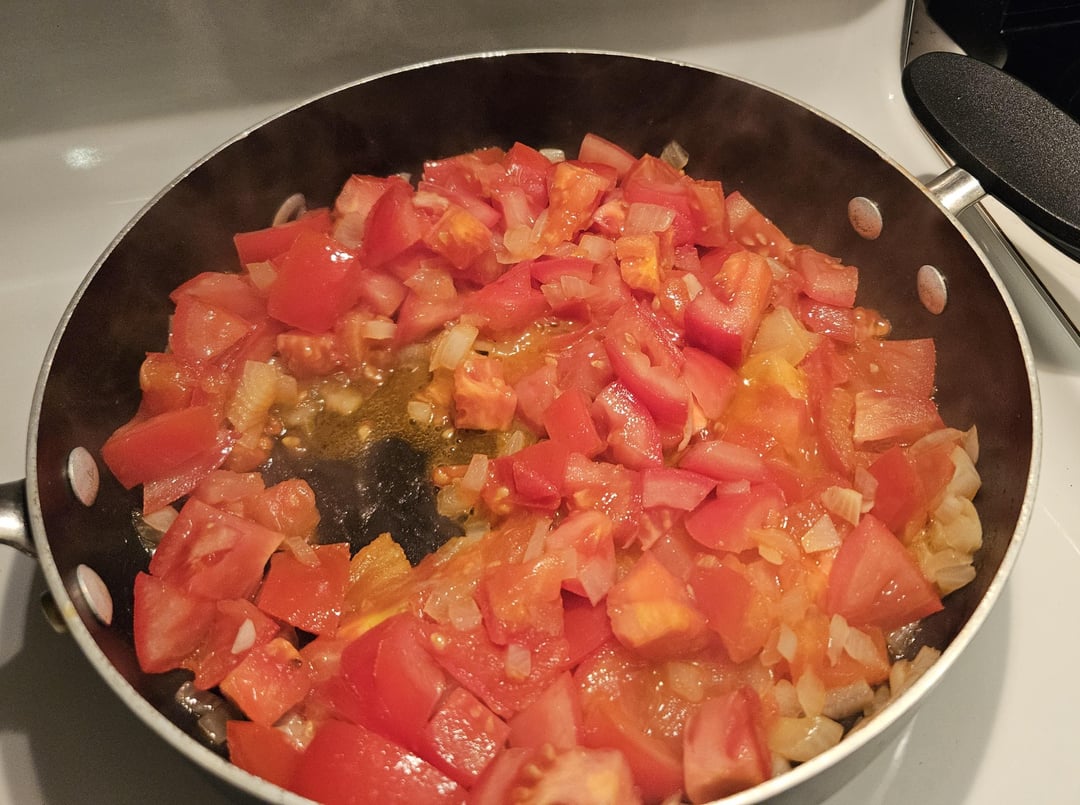 I made a sauce from fresh tomatoes (the one in the picture was later blended) and tossed the pasta into it with pasta water. I didn't get a picture because I was too excited!