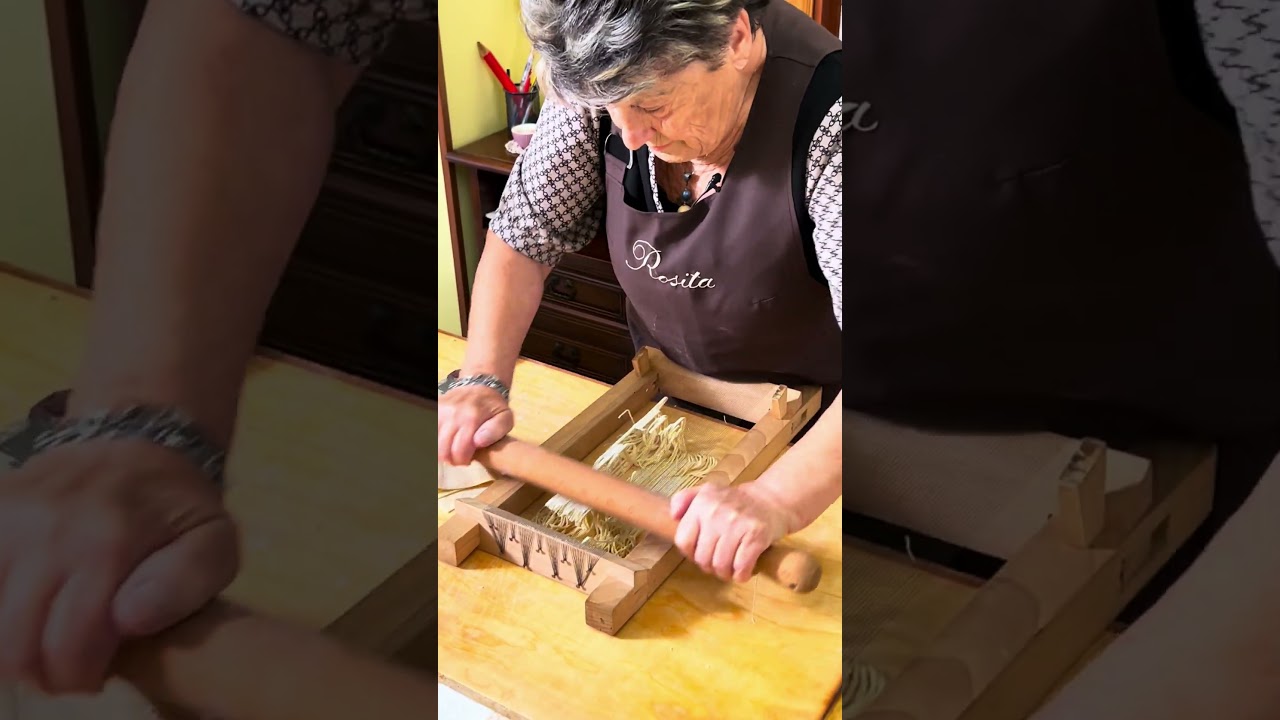 Here is how Italians make pasta with meatballs: it’s a recipe special to Teramo and pasta is made with a chitarra (the name varies from spaghetti , maccheroni, chitarra ). And the meatballs are a labour of love! They are the size of chickpeas. Cookery writer and teacher Rosita shows us how it’s made.