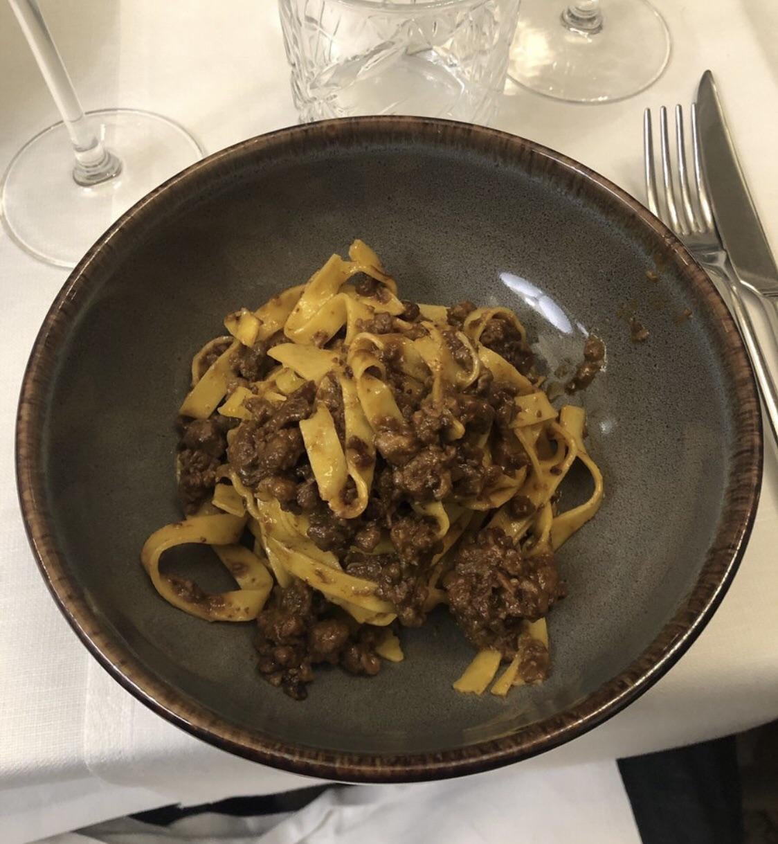 It was at a restaurant called Vicolo Colombina in Bologna. I regret not asking the chef if they could share any tips. My bolognese is fine, but doesn’t really compare (I follow the traditional recipe). Traditional bolognese is more reddish in colour, so I’m guessing they skipped the passata and just used tomato paste maybe? I don’t know. It was very rich and so delicious. I never had another bolognese in Italy that was as good.