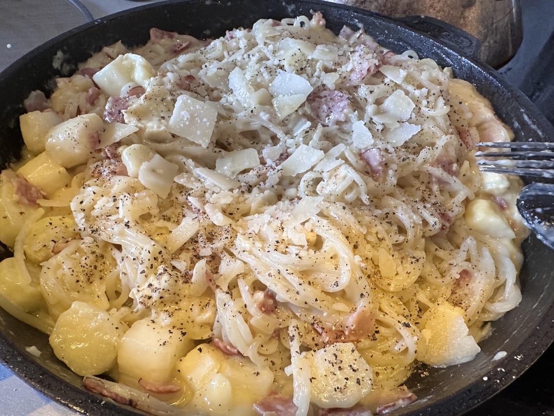 Put on the plate. Sprinkle with parmegian and pepper and enjoy.