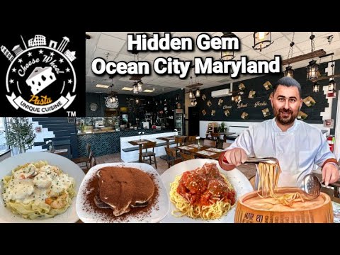 Join us in Ocean City Maryland at The Cheese Wheel Pasta. This Cheese Wheel Pasta makes its own Pasta and then puts it on a cheese wheel for all to watch. So let’s go inside this Hidden Gem of Ocean City and look at the menu and order a few items from this awesome restaurant The Cheese Wheel Pasta.