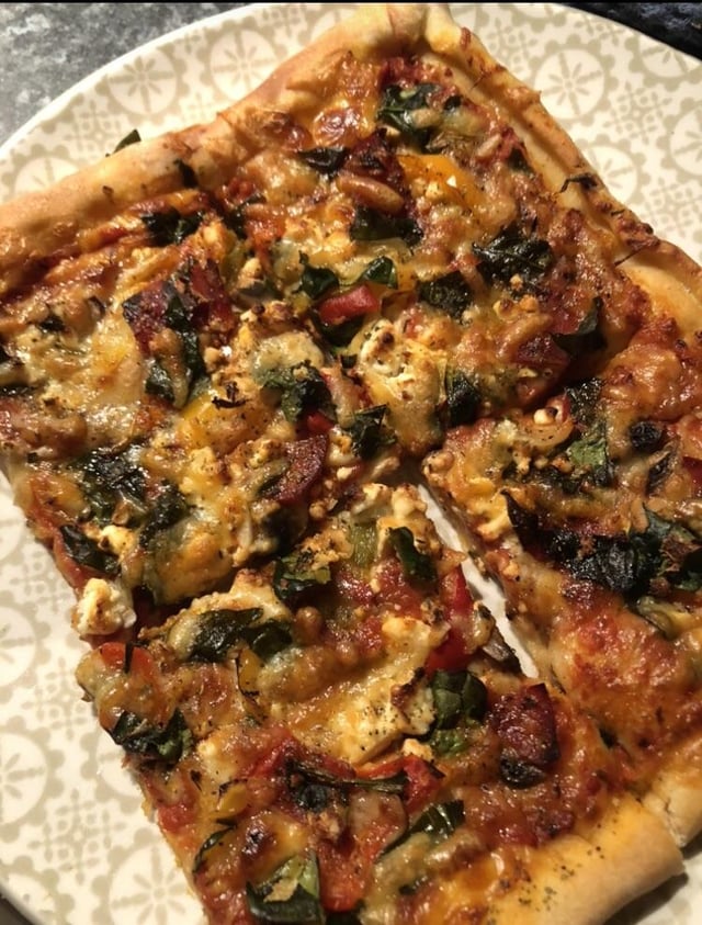 Tomato, olives, garlic, spinach, onions, pepper and various cheeses with sweet chilli and garlic mayo!by Ambae2000 Looking for FeedbackpizzaWrite A CommentYou must be logged in to post a comment.