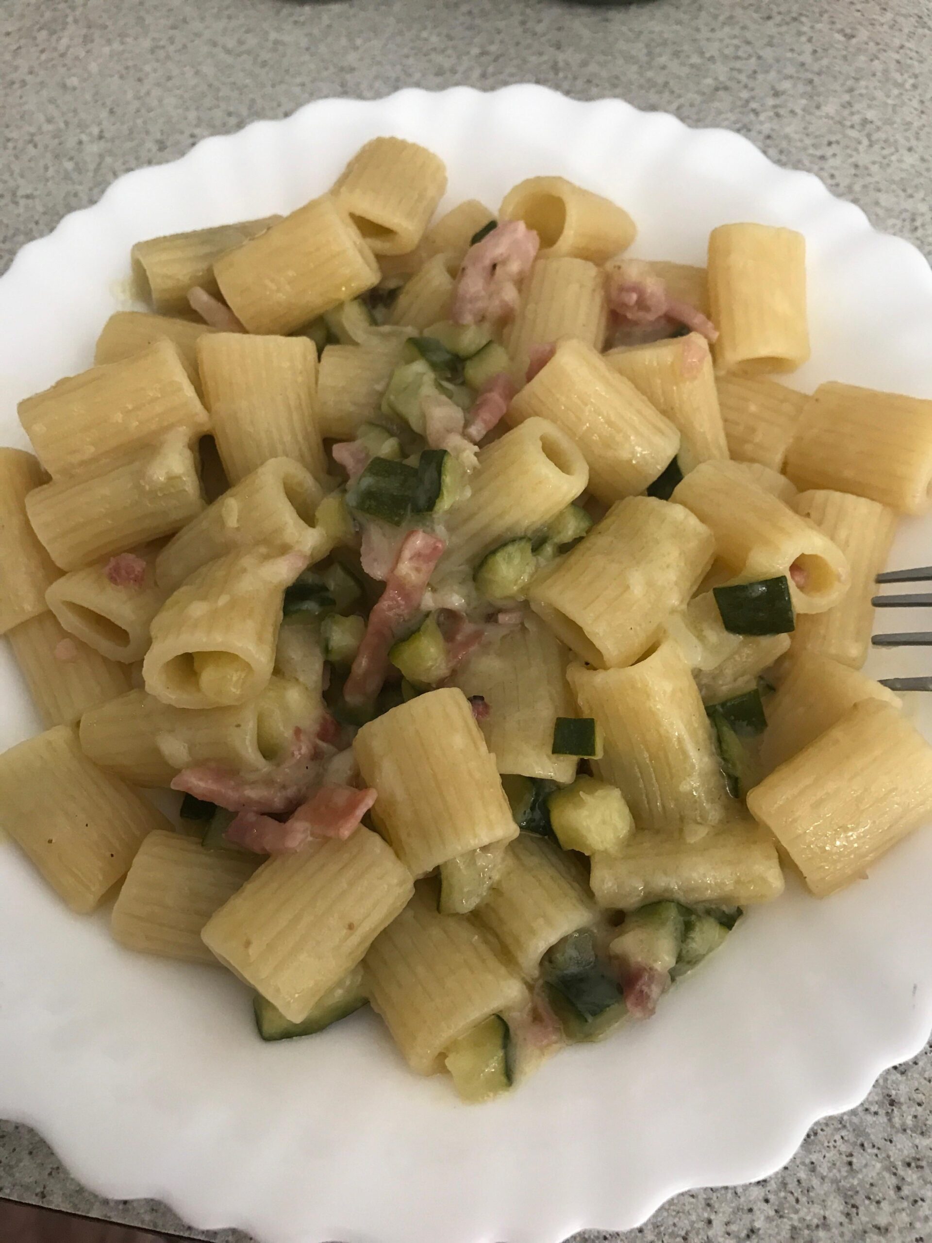 A new experiment of mine: courgette and speck cooked together with onions and evo oil… pasta sautéed in the sauce with a sprinkling of Parmesan. Result: 😋 yummy