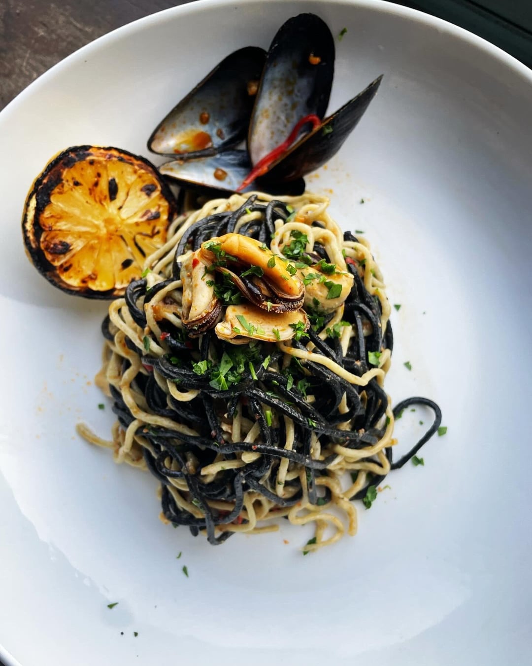 – finish with charred lemon – squeeze over individual plates when serving