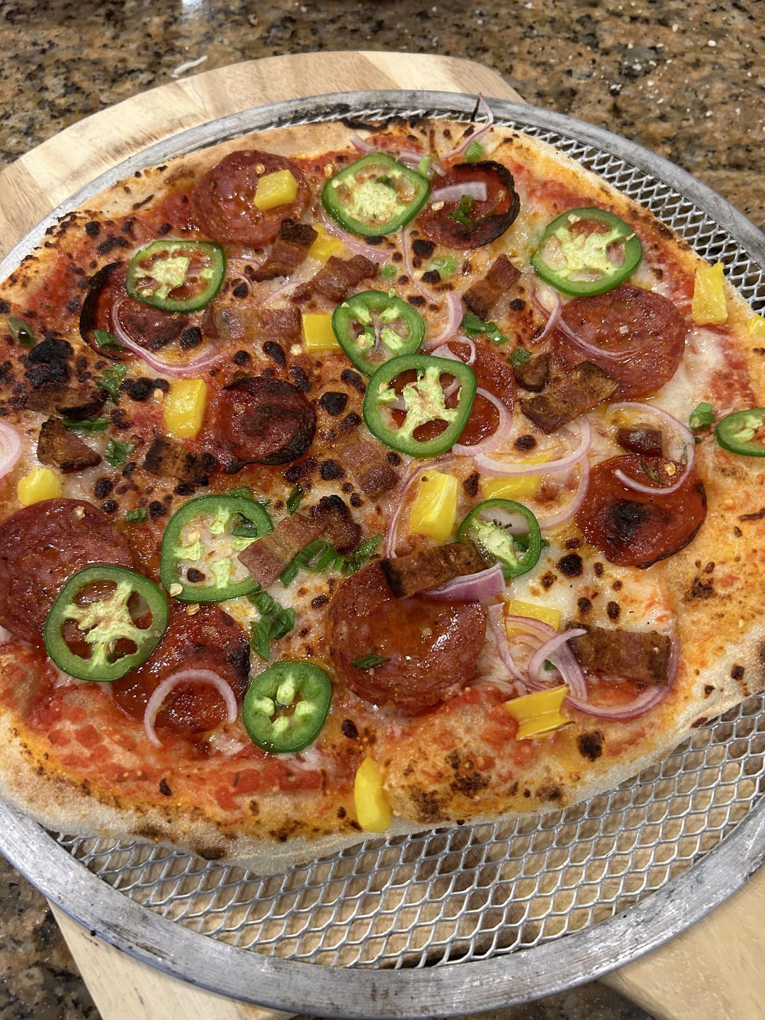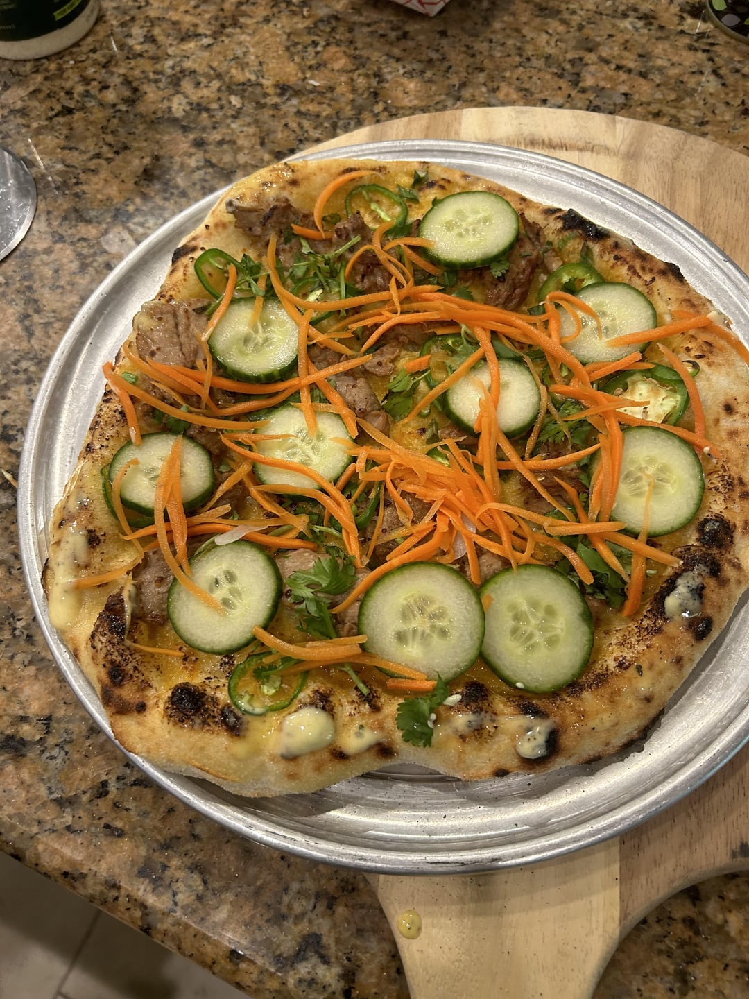 A few of the pizzas from tonight. First one is the crowd favorite Bahn mi pizza.