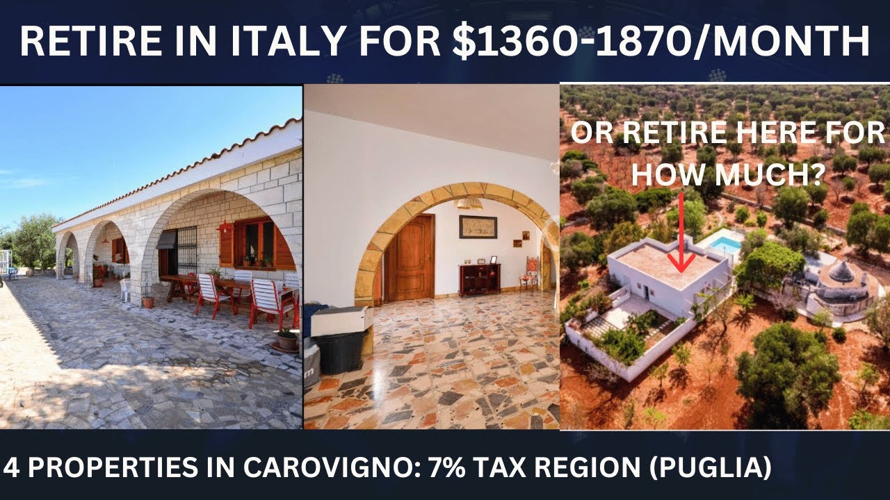 In this retire for cheap in Puglia video, we touch on some important details like how to get the 7% flat tax in Italy, some considerations when thinking about getting an Italian drivers license, and then jump right into a few properties in Carovigno, Italy that might be perfect in you are interested in how to retire in Puglia for cheap.