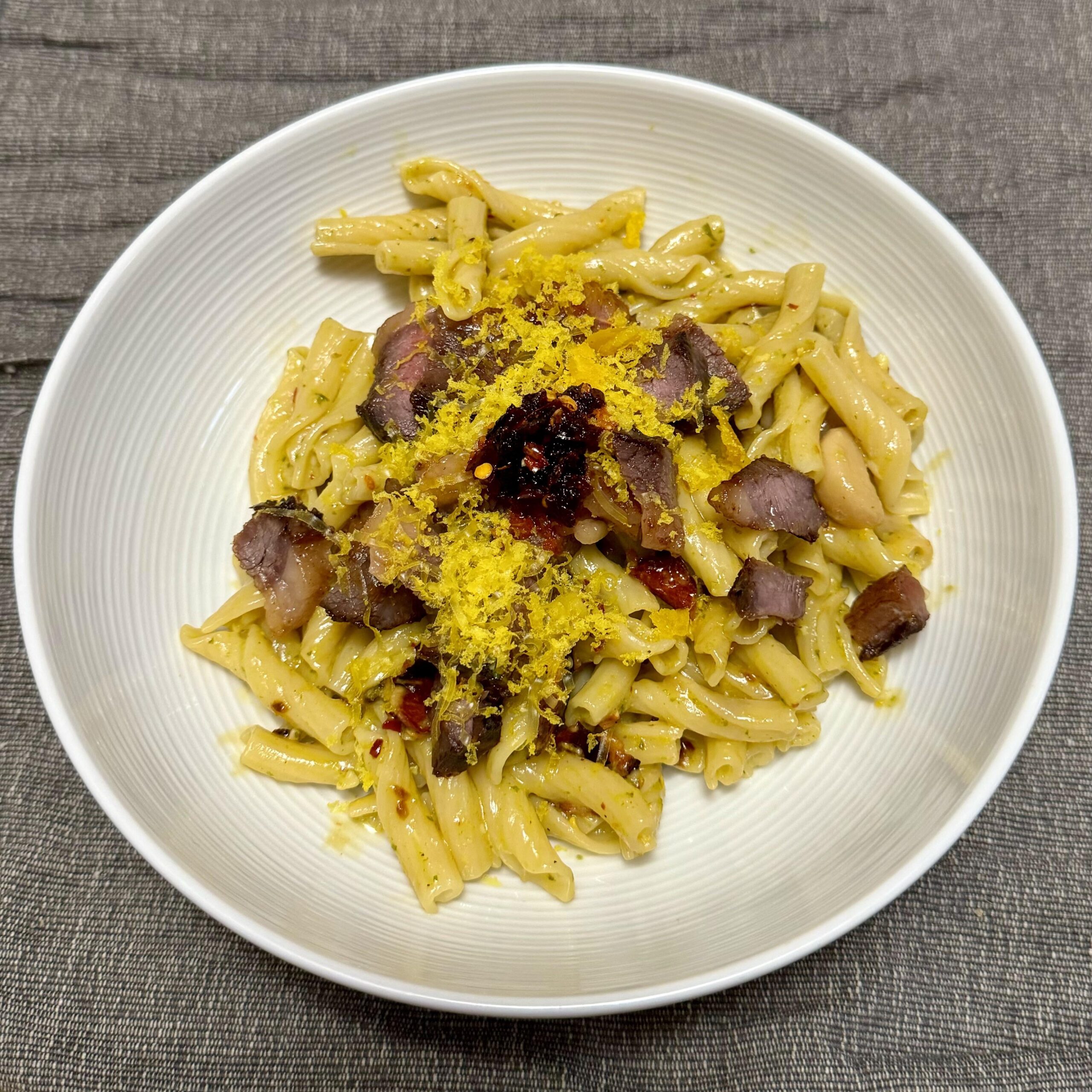 Pesto carbonara with confit garlic, chili crisp cured egg yolks, and leftover dry aged picanha [OC]by Jadorel78 Pastapasta from scratchWrite A CommentYou must be logged in to post a comment.