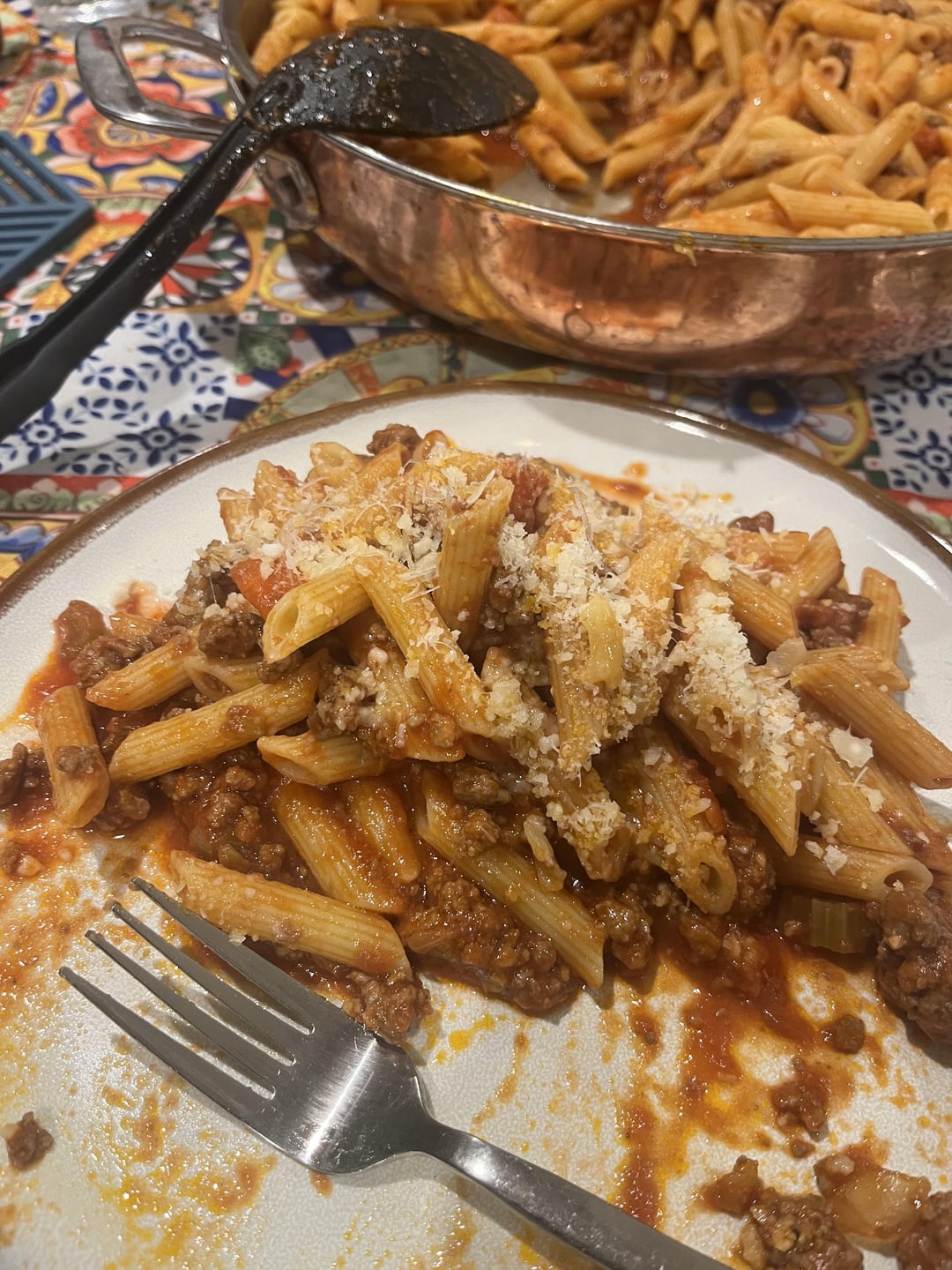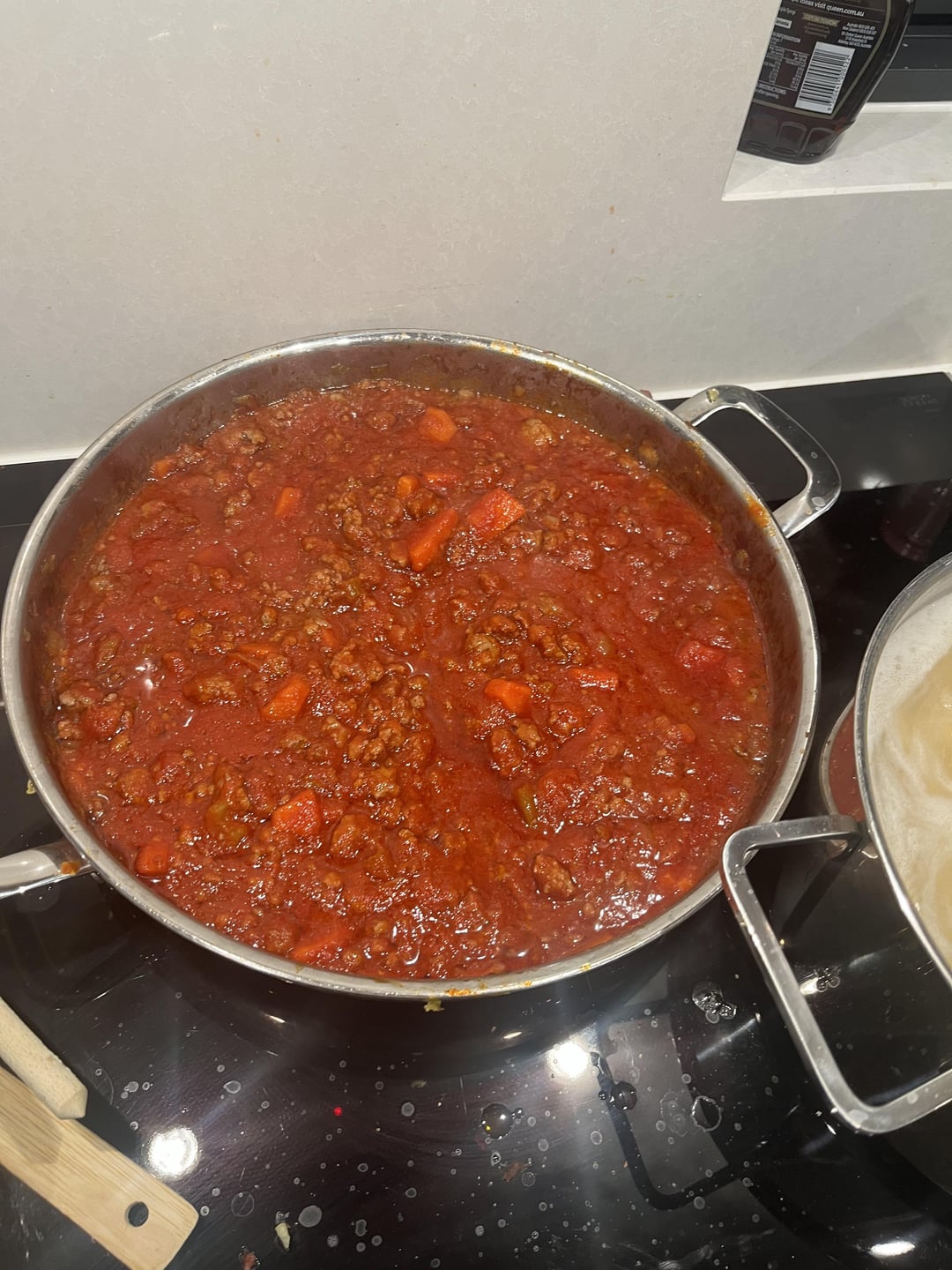 Salve ragazzi ! Made a traditional ragù which slowly cooked at a low heat for 3 hours (yes I did get excited and took a photo after eating half a plate)
