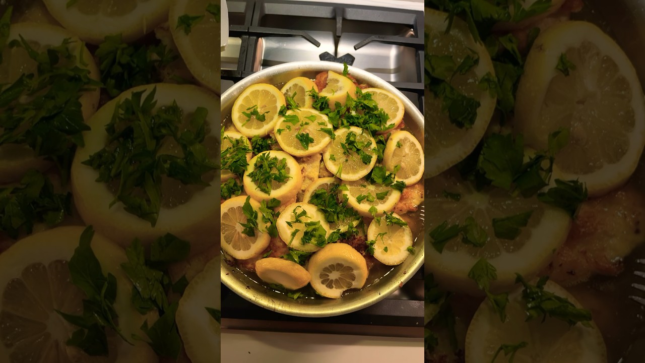 all right tonight we’re going to do a quick and easy chicken franches the chicken cutlets floured dusted dredged and egg wash they’re frying up nicely in olive oil butter and garlic vegetable tonight is broccoli R garlic and oil chicken cutlets are frying up just beautifully so the chicken franchise balances just perfectly with a chilled Savon Blanc it’s crisp beautiful I will sneak in a quick taste nice cotlets tonight a lot of kids tonight right we hit it with some white wine chicken broth a whole lot of lemon that’s some fresh parsley and we finish in the oven 15 minutes I Sal that’s