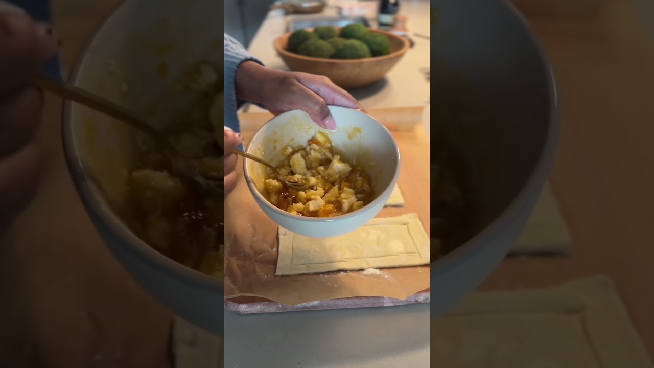 show you how to make the easiest appetizer think of cheese and crackers with a Twist so you’re going to take some Bree and some apricot Reserve mix those two together and then move it to the side get you a baking sheet and some flour so your puff pastry doesn’t stick and then I’m going to cut along the bottom part because what I really want is like a rectangular shape separating them out I’m only going to do about three of them and then prorating the edges now this is going to assist with helping us get the doo Riz then you’re going to take your mixture and put it directly into the Center then some egg white and some milk now that’s going to be the main thing to help it rise hubby likes walnuts I’m putting that on his and then I like almonds then I’m going to pop that right into the oven for 350 for about 15 minutes and then it kind of looks like pizza but just add honey on top and it’s so good love it